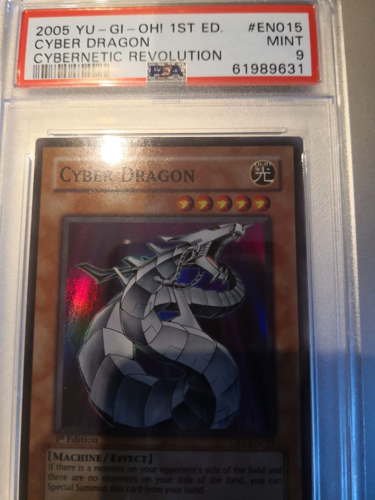 Hi there you are buying a yu-gi-oh card which is PSA grade. You will be getting Cyber Dragon crv-en015 1st edition super rare. It is grade bye psa and is graded 9. If you got any question please e-mail me come and look at me other item's for sell. I will ship worldwide Thank You