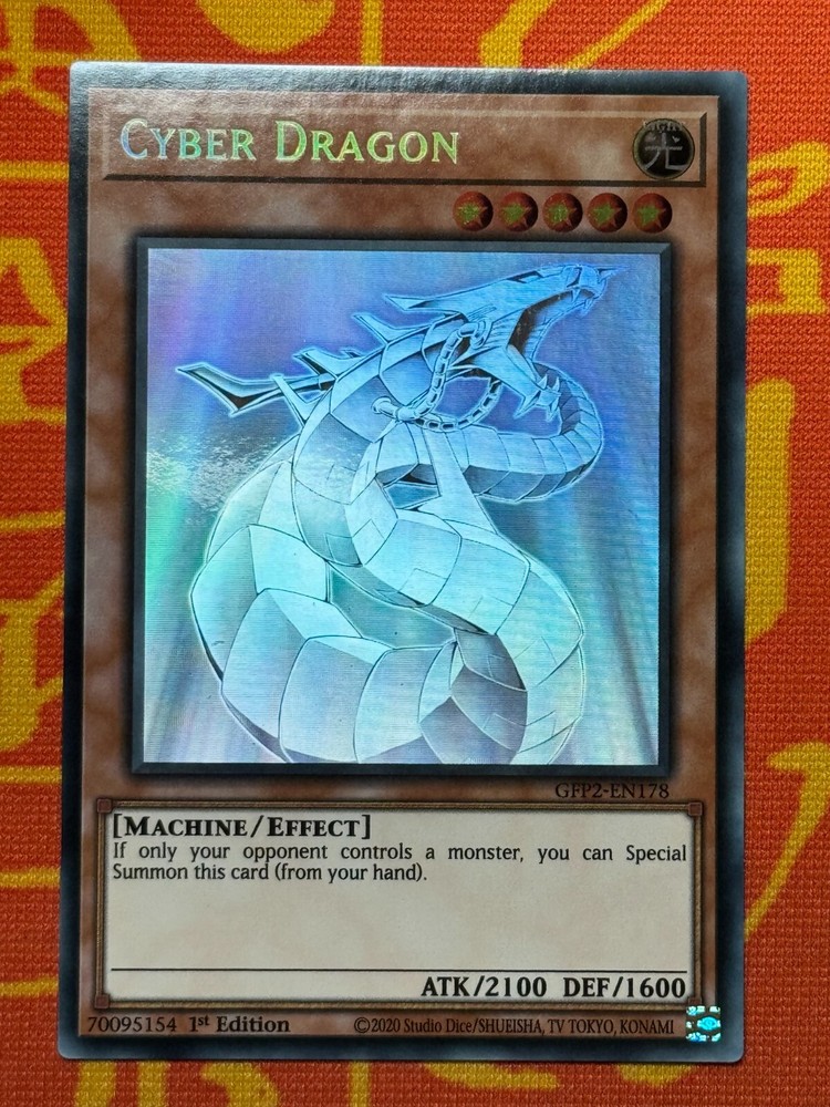 Cyber Dragon Ghost in Near Mint condition. We refrain from listing cards as mint as sometimes the most minor wear goes unnoticed . All cards will be dispatched within two working days and come well-packaged in a toploader to avoid any damage in the post. Postage is completely free on all of our items. Please note that each listing is for 1 copy of the card(s) stated in the title unless otherwise specified; pictures are sometimes taken of every available copy to give you a better idea of the condition. Please feel free to send us a message with any questions you may have regarding an item, and happy bidding! Condition Grading Scale: Near Mint/NM - No notable wear or damage. Excellent/EX - Might have slightly more wear/whitening than normal, or a faint crease/scratch/dent. Light Play/LP - Multiple marks/scuffing and/or multiple light creases/scratches, etc. Heavy Play/HP - Heavily used. Will have combinations of edgewear, multiple marks and creases, etc. For most items below near mint condition, additional photographs will be provided to further detail the extent of any wear or damage. We regret that requests for photographs of cards on specific backgrounds or lighting are not possible.