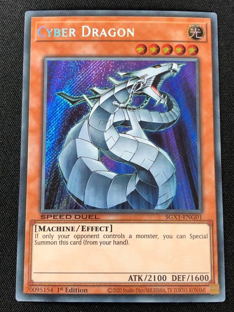 This Secret Rare Cyber Dragon is a must-have for any Yu-Gi-Oh! Speed Duel collector! The card arrived in perfect near-mint condition, just as described, with stunning holographic shine. The seller was reliable and clearly stated their policy on card variations, making the purchase stress-free. Great communication and fast shipping—highly recommend for both competitive play and nostalgia. A fantastic addition to my deck!