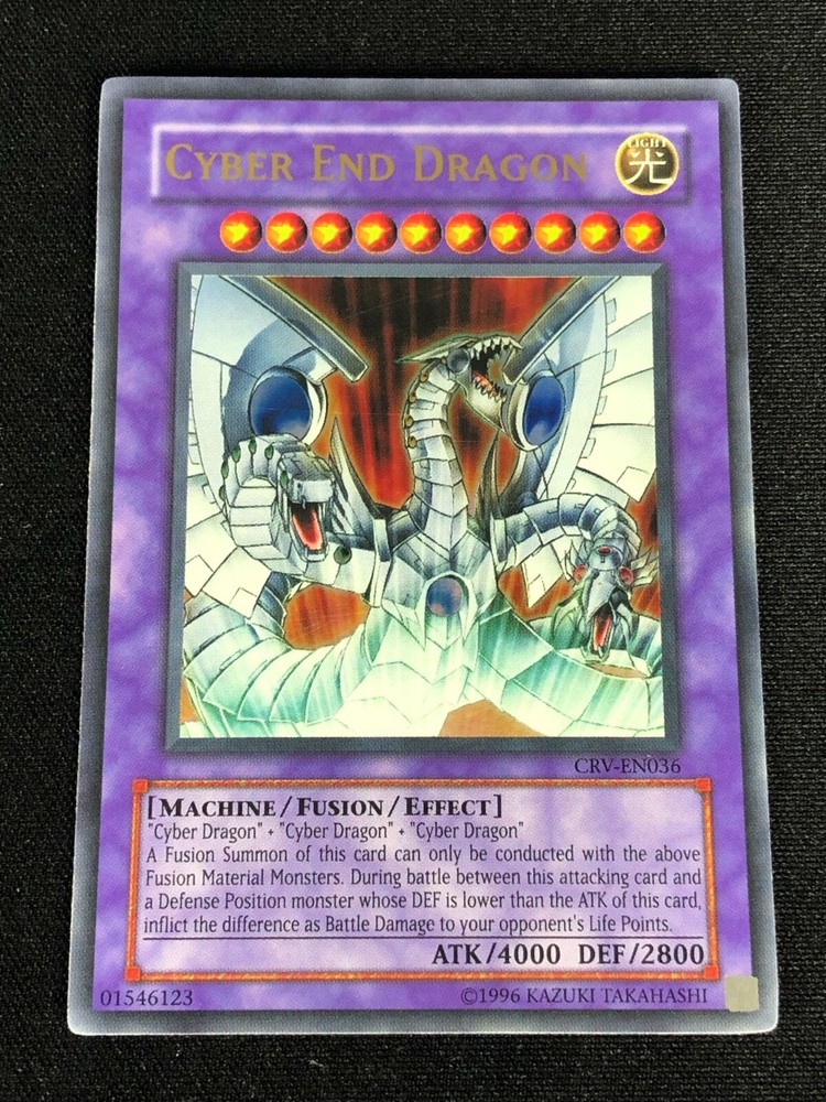 YUGIOH CYBER END DRAGON CRV-EN036 ULTRA (LP) ALL CARDS IN THIS AUCTION ARE IN NEAR MINT TO MINT CONDITION UNLESS STATED OTHERWISE IN THE TITLE. AND, YOU ARE GUARANTEED TO RECEIVE THE CARD NAMED IN THE TITLE. PLEASE NOTE, IF THERE'S MORE THAN 1 COPY AVAILABLE, YOU MAY NOT RECIEVE THE SAME EXACT CARD IN THE PHOTO. HOWEVER, IT WILL BE THE SAME EXACT CARD IN THE TITLE, AND DESCRIPTION! PLEASE CONTACT ME IF THERE IS ANYTHING WRONG WITH YOUR ORDER OR SHIPPING BEFORE LEAVING FEEDBACK. PLEASE GIVE ME A CHANCE TO FIX ANY PROBLEM YOU MAY HAVE. THANK YOU! Shipping Information: Shipping and Handling for this auction will be Free inside the United States - With Tracking! International Shipping Available Through Ebay’s Global Shipping Program. (BUYER IS RESPONSIBLE FOR ANY TAX) **Read the TITLE to see the condition of the cards Before you place a bid. Any damaged cards will be listed as such In The Title (FOR EXAMPLE: Blue Eyes White Dragon LOB-001 (HP) If it doesn't say anything about damage, it is in near-mint to mint condition. If you have any questions, message me Before you place your bid.** *PLEASE READ* Ebay's Card Condition Guidelines: (NM) = Near mint or better Comparable to a fresh pack Flaws may include Minor corner and edge wear (LP) = Lightly played (Excellent) Has clearly visible signs of wear Flaws may include Moderate edge chipping Moderate surface scuffing Fuzzy corners (MP) = Moderately played (Very good) Has moderate-to-heavy damage all over Flaws may include Moderate discoloration Moderate creasing Moderate to heavy edge chipping Rounding and soft corner (HP) = Heavily played (Poor) Is extremely worn and displays flaws all over Heavily Played condition cards exhibit signs of heavy wear. Heavily Played condition cards may include cards that have significant creasing, folding, severe water damage, heavy whitening, heavy border wear, and/or tearing. RETURN POLICY: RETURNS ARE ACCEPTED IF THE ITEM ARRIVES DAMAGED, OR NOT AS DESCRIBED. RETURNS ARE NOT ACCEPTED FOR BUYERS REMORSE. CHECK OUT MY OTHER AUCTIONS! _gsrx_vers_1680 (GS 9.8.3 (1680))