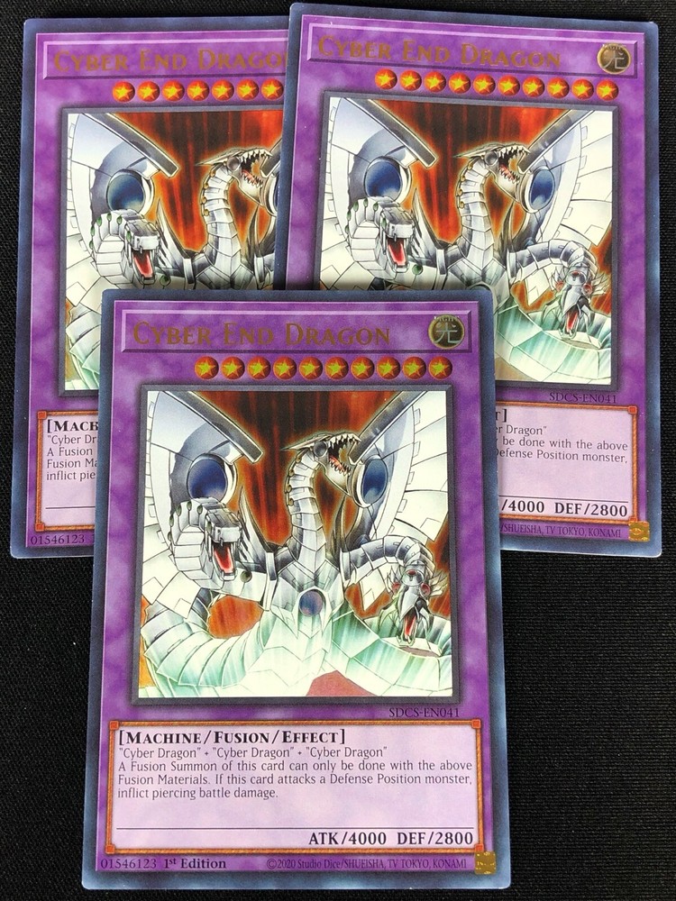 YUGIOH CYBER END DRAGON SDCS-EN041 1ST ULTRA X3 (NM) ALL CARDS IN THIS AUCTION ARE IN NEAR MINT TO MINT CONDITION UNLESS STATED OTHERWISE IN THE TITLE. AND, YOU ARE GUARANTEED TO RECEIVE THE CARD NAMED IN THE TITLE. PLEASE NOTE, IF THERE'S MORE THAN 1 COPY AVAILABLE, YOU MAY NOT RECIEVE THE SAME EXACT CARD IN THE PHOTO. HOWEVER, IT WILL BE THE SAME EXACT CARD IN THE TITLE, AND DESCRIPTION! PLEASE CONTACT ME IF THERE IS ANYTHING WRONG WITH YOUR ORDER OR SHIPPING BEFORE LEAVING FEEDBACK. PLEASE GIVE ME A CHANCE TO FIX ANY PROBLEM YOU MAY HAVE. THANK YOU! Shipping Information: Shipping and Handling for this auction will be Free inside the United States - With Tracking! International Shipping Available Through Ebay’s Global Shipping Program. (BUYER IS RESPONSIBLE FOR ANY TAX) **Read the TITLE to see the condition of the cards Before you place a bid. Any damaged cards will be listed as such In The Title (FOR EXAMPLE: Blue Eyes White Dragon LOB-001 (HP) If it doesn't say anything about damage, it is in near-mint to mint condition. If you have any questions, message me Before you place your bid.** *PLEASE READ* Ebay's Card Condition Guidelines: (NM) = Near mint or better Comparable to a fresh pack Flaws may include Minor corner and edge wear (LP) = Lightly played (Excellent) Has clearly visible signs of wear Flaws may include Moderate edge chipping Moderate surface scuffing Fuzzy corners (MP) = Moderately played (Very good) Has moderate-to-heavy damage all over Flaws may include Moderate discoloration Moderate creasing Moderate to heavy edge chipping Rounding and soft corner (HP) = Heavily played (Poor) Is extremely worn and displays flaws all over Heavily Played condition cards exhibit signs of heavy wear. Heavily Played condition cards may include cards that have significant creasing, folding, severe water damage, heavy whitening, heavy border wear, and/or tearing. RETURN POLICY: RETURNS ARE ACCEPTED IF THE ITEM ARRIVES DAMAGED, OR NOT AS DESCRIBED. RETURNS ARE NOT ACCEPTED FOR BUYERS REMORSE. CHECK OUT MY OTHER AUCTIONS! _gsrx_vers_1680 (GS 9.8.3 (1680))