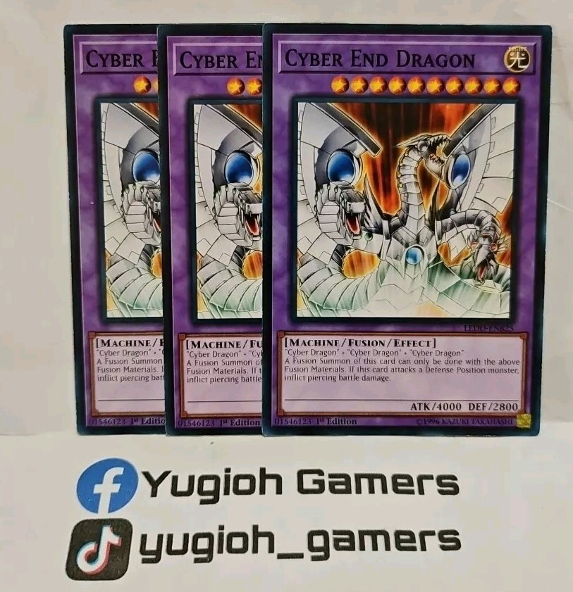 THIS AUCTION IS FOR 3 CYBER END DRAGON COMMON LIGHT PLAYED VISIT MY FACEBOOK PAGE YUGIOH GAMERS