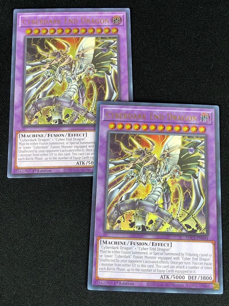 YUGIOH CYBERDARK END DRAGON SDCS-EN044 1ST ULTRA X2 (NM) ALL CARDS IN THIS AUCTION ARE IN NEAR MINT TO MINT CONDITION UNLESS STATED OTHERWISE IN THE TITLE. AND, YOU ARE GUARANTEED TO RECEIVE THE CARD NAMED IN THE TITLE. PLEASE NOTE, IF THERE'S MORE THAN 1 COPY AVAILABLE, YOU MAY NOT RECIEVE THE SAME EXACT CARD IN THE PHOTO. HOWEVER, IT WILL BE THE SAME EXACT CARD IN THE TITLE, AND DESCRIPTION! PLEASE CONTACT ME IF THERE IS ANYTHING WRONG WITH YOUR ORDER OR SHIPPING BEFORE LEAVING FEEDBACK. PLEASE GIVE ME A CHANCE TO FIX ANY PROBLEM YOU MAY HAVE. THANK YOU! Shipping Information: Shipping and Handling for this auction will be Free inside the United States - With Tracking! International Shipping Available Through Ebay’s Global Shipping Program. (BUYER IS RESPONSIBLE FOR ANY TAX) **Read the TITLE to see the condition of the cards Before you place a bid. Any damaged cards will be listed as such In The Title (FOR EXAMPLE: Blue Eyes White Dragon LOB-001 (HP) If it doesn't say anything about damage, it is in near-mint to mint condition. If you have any questions, message me Before you place your bid.** *PLEASE READ* Ebay's Card Condition Guidelines: (NM) = Near mint or better Comparable to a fresh pack Flaws may include Minor corner and edge wear (LP) = Lightly played (Excellent) Has clearly visible signs of wear Flaws may include Moderate edge chipping Moderate surface scuffing Fuzzy corners (MP) = Moderately played (Very good) Has moderate-to-heavy damage all over Flaws may include Moderate discoloration Moderate creasing Moderate to heavy edge chipping Rounding and soft corner (HP) = Heavily played (Poor) Is extremely worn and displays flaws all over Heavily Played condition cards exhibit signs of heavy wear. Heavily Played condition cards may include cards that have significant creasing, folding, severe water damage, heavy whitening, heavy border wear, and/or tearing. RETURN POLICY: RETURNS ARE ACCEPTED IF THE ITEM ARRIVES DAMAGED, OR NOT AS DESCRIBED. RETURNS ARE NOT ACCEPTED FOR BUYERS REMORSE. CHECK OUT MY OTHER AUCTIONS! _gsrx_vers_1680 (GS 9.8.3 (1680))