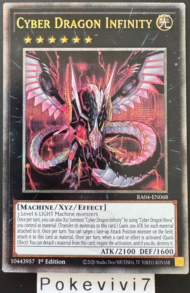 Just got this Cyber Dragon Infinity card and wow! The quarter century secret rare finish is absolutely stunning - it shimmers with this incredible rainbow effect in the light. The artwork looks so crisp and detailed. Arrived perfectly protected and exactly as described. Definitely my new favorite card in my collection!