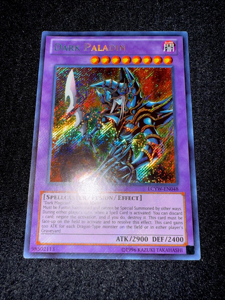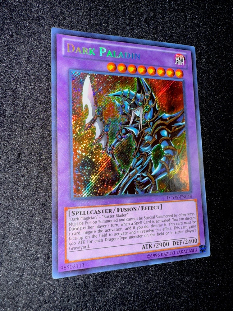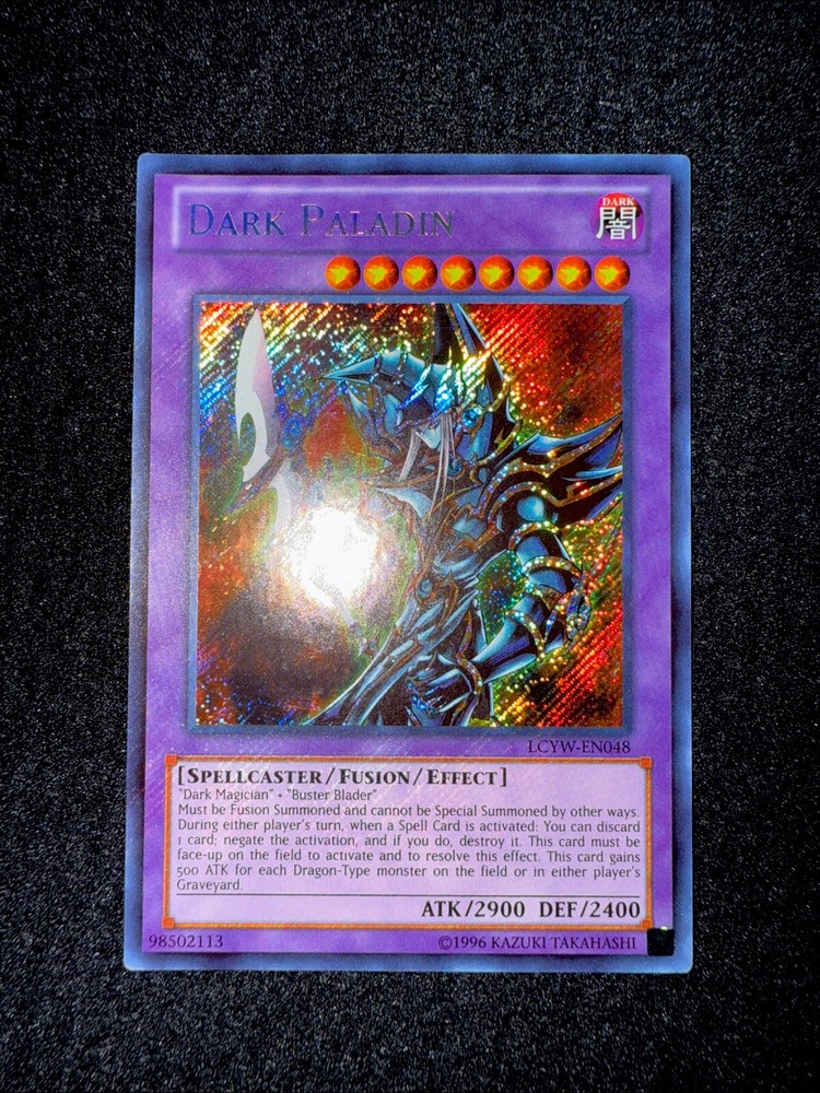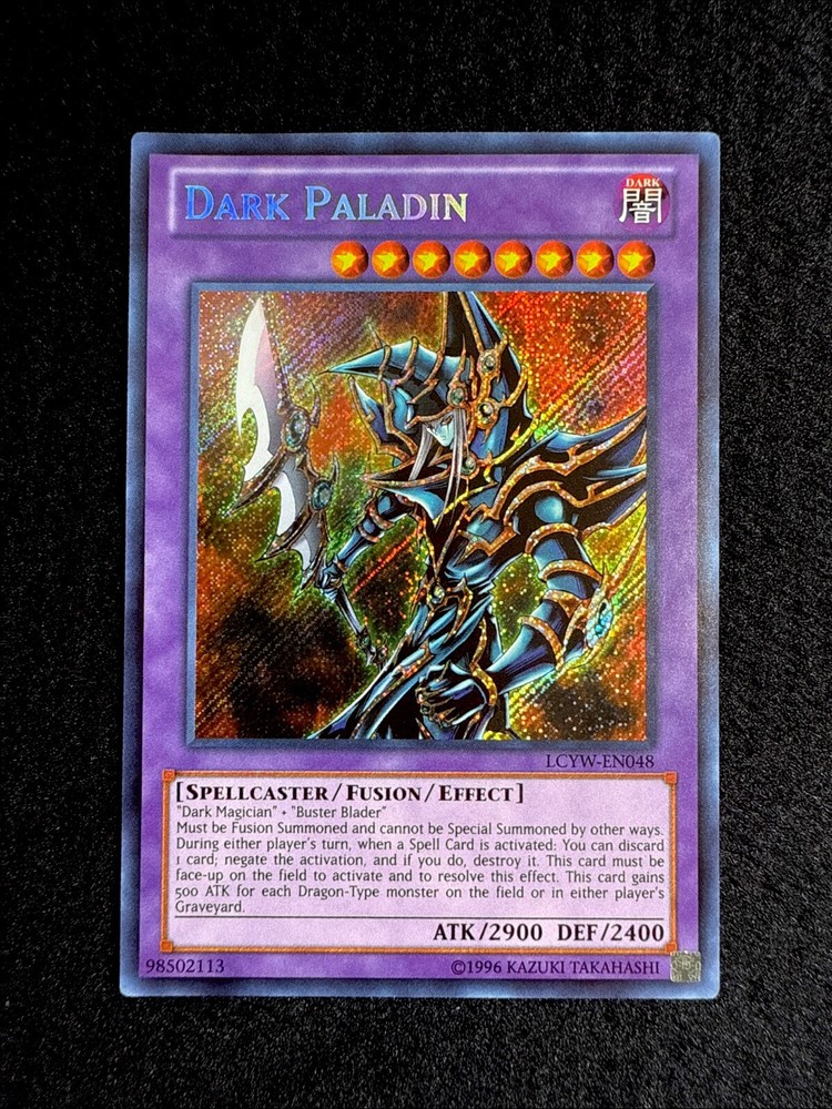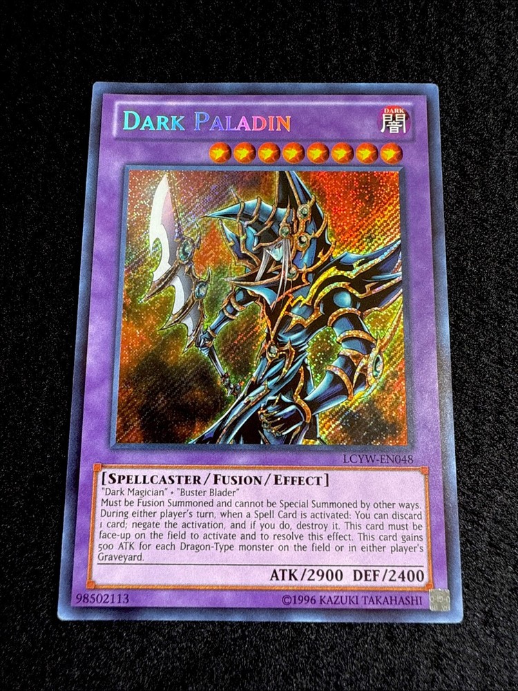 🔥YUGIOH • DARK PALADIN • SECRET RARE • LCYW-EN048 • UNLIMITED • NEAR MINT🔥 Card Sleeve Included + Top Loader • NEAR MINT CARD • Authentic Konami USA Version YOU ARE GUARANTEED TO GET THE CARD NAMED IN THE TITLE. Thank you
