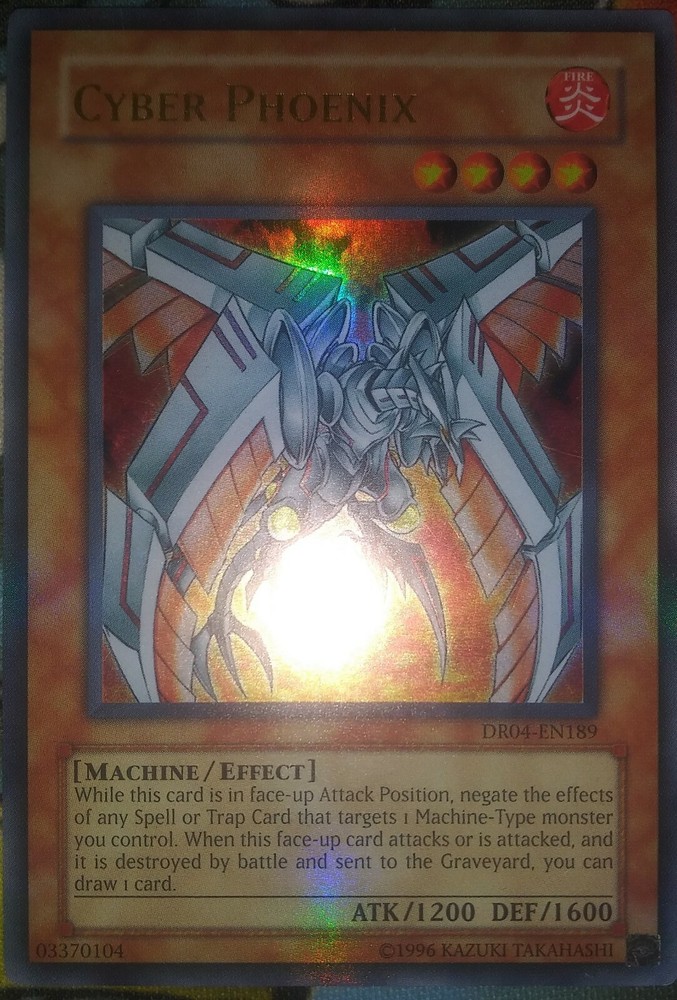 YUGIOH DR04-EN189 CYBER PHOENIX ULTRA RARE. Condition is Used. Shipped with USPS First Class Package. The card is sent in a card sleeve and plastic top loader Check out the other cards that are listed! If payment is not made within 12 hours of selecting a card(s), the item will no longer be entitled to you. we do not provide tracking for orders under $25