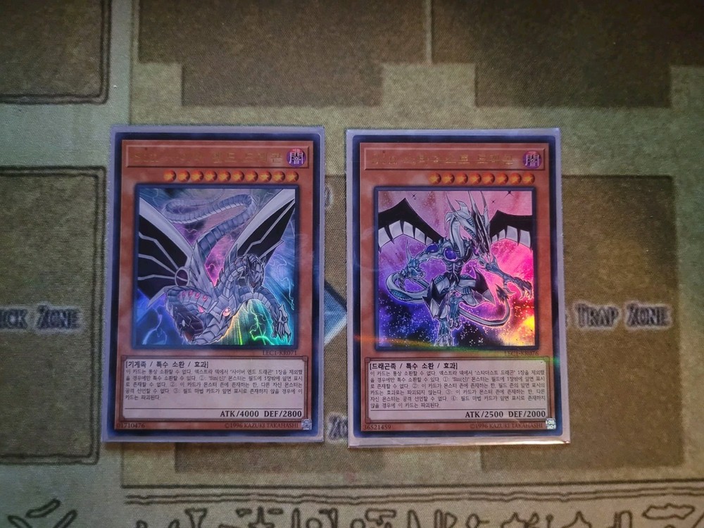 YUGIOH OCG MALEFIC STARDUST DRAGON LEC1-KR076 ULTRA + MALEFIC CYBER END DRAGON LEC1-KR071 ULTRA KOREAN NEAR MINT YOU GET WHATS SHOWN IN THE PICTURE AND DESCRIPTION ALL CARDS ARE SHIP WITH PROECTIONS. ALL CARDS THAT IS BELOW 20$ WELL BE SHIP IN PWE WITH EBAY TRACKING. 24$-21$ CARDS WELL BE WITH STAMPS PWE. CARDS ABOVE 25$ WELL BE SHIP IN BUBBLE MAIL WITH USPS GROUND SHIPPING TRACKING. IF YOUR ORDERS ADDS UP TO 25$ OR ABOVE IT WOULD BE ALSO IN A BUBBLE MAILER. IF YOU ARE FROM PUERTO RICO AND ARE BUYING MAKE SURE YOU HAVE "COUNTRY LIST AS UNITED STATES NOT PRI" OR ELSE I CAN'T PRINT EBAYSHIPPING LABEL WITH TRACKING AND WELL SENT ITEM BY STAMPS TO YOU. THANKS. To international buyers since I have been having many buyers that are using Fright Forward Services. YOU ARE BUYING AT YOUR OWN RISK. As I list in my description, I ship using PWE (Plain White Envelope) for cards that does not reach $25 and above. I do not know how the Fright Services pack it after mailing it to them. All I know is that many of the PWE does not make it to its original destination (your real home address) either it's the Fright Services fault for not packing it in bubble mailer or Usps for losing it in transit. If it is being send by PWE by the Fright Services, it made take months before getting there. Also, in case if its lost or does not make it to its destination you must direct your attention to the Fright Services before contacting me. It is not my responsibly for lost mail(item) due to 3rd party delivery. To make sure you get your cards to you faster and more accuracy you must order cards combining to $25 or above that way I can use Ground Advantage and send it in bubble mailer most of the bubble mailer I use will make it to its destination. Thank you. IF YOU CAN LEAVE FEEDBACKS THAT WOULD BE MUCH APPRECIATE THANK YOU FOR BUYING.