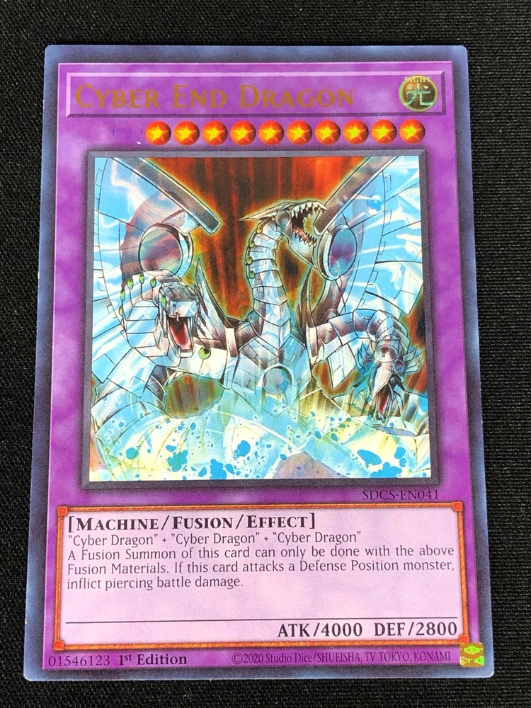 YUGIOH MISPRINT! CYBER END DRAGON SDCS-EN041 1ST ULTRA (NM) ALL CARDS IN THIS AUCTION ARE IN NEAR MINT TO MINT CONDITION UNLESS STATED OTHERWISE IN THE TITLE. AND, YOU ARE GUARANTEED TO RECEIVE THE CARD NAMED IN THE TITLE. PLEASE NOTE, IF THERE'S MORE THAN 1 COPY AVAILABLE, YOU MAY NOT RECIEVE THE SAME EXACT CARD IN THE PHOTO. HOWEVER, IT WILL BE THE SAME EXACT CARD IN THE TITLE, AND DESCRIPTION! PLEASE CONTACT ME IF THERE IS ANYTHING WRONG WITH YOUR ORDER OR SHIPPING BEFORE LEAVING FEEDBACK. PLEASE GIVE ME A CHANCE TO FIX ANY PROBLEM YOU MAY HAVE. THANK YOU! Shipping Information: Shipping and Handling for this auction will be Free inside the United States - With Tracking! International Shipping Available Through Ebay’s Global Shipping Program. (BUYER IS RESPONSIBLE FOR ANY TAX) **Read the TITLE to see the condition of the cards Before you place a bid. Any damaged cards will be listed as such In The Title (FOR EXAMPLE: Blue Eyes White Dragon LOB-001 (HP) If it doesn't say anything about damage, it is in near-mint to mint condition. If you have any questions, message me Before you place your bid.** *PLEASE READ* Ebay's Card Condition Guidelines: (NM) = Near mint or better Comparable to a fresh pack Flaws may include Minor corner and edge wear (LP) = Lightly played (Excellent) Has clearly visible signs of wear Flaws may include Moderate edge chipping Moderate surface scuffing Fuzzy corners (MP) = Moderately played (Very good) Has moderate-to-heavy damage all over Flaws may include Moderate discoloration Moderate creasing Moderate to heavy edge chipping Rounding and soft corner (HP) = Heavily played (Poor) Is extremely worn and displays flaws all over Heavily Played condition cards exhibit signs of heavy wear. Heavily Played condition cards may include cards that have significant creasing, folding, severe water damage, heavy whitening, heavy border wear, and/or tearing. RETURN POLICY: RETURNS ARE ACCEPTED IF THE ITEM ARRIVES DAMAGED, OR NOT AS DESCRIBED. RETURNS ARE NOT ACCEPTED FOR BUYERS REMORSE. CHECK OUT MY OTHER AUCTIONS! _gsrx_vers_1680 (GS 9.8.3 (1680))