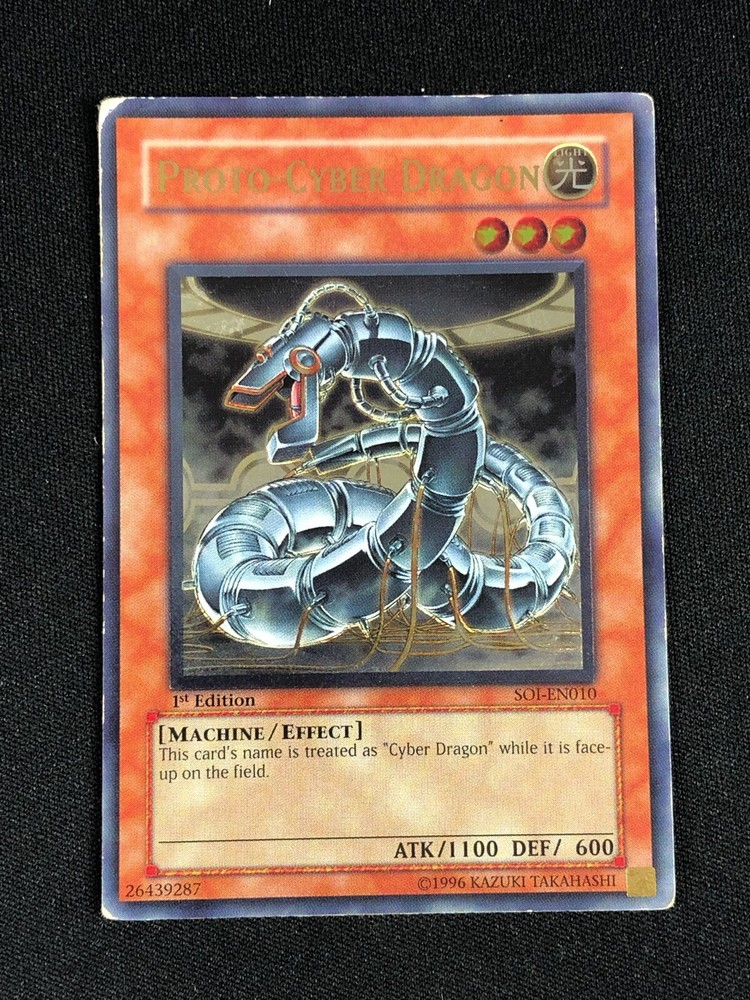 YUGIOH PROTO-CYBER DRAGON SOI-EN110 1ST ULTIMATE HP/ CREASES ALL CARDS IN THIS AUCTION ARE IN NEAR MINT TO MINT CONDITION UNLESS STATED OTHERWISE IN THE TITLE. AND, YOU ARE GUARANTEED TO RECEIVE THE CARD NAMED IN THE TITLE. PLEASE NOTE, IF THERE'S MORE THAN 1 COPY AVAILABLE, YOU MAY NOT RECIEVE THE SAME EXACT CARD IN THE PHOTO. HOWEVER, IT WILL BE THE SAME EXACT CARD IN THE TITLE, AND DESCRIPTION! PLEASE CONTACT ME IF THERE IS ANYTHING WRONG WITH YOUR ORDER OR SHIPPING BEFORE LEAVING FEEDBACK. PLEASE GIVE ME A CHANCE TO FIX ANY PROBLEM YOU MAY HAVE. THANK YOU! Shipping Information: Shipping and Handling for this auction will be Free inside the United States - With Tracking! International Shipping Available Through Ebay’s Global Shipping Program. (BUYER IS RESPONSIBLE FOR ANY TAX) **Read the TITLE to see the condition of the cards Before you place a bid. Any damaged cards will be listed as such In The Title (FOR EXAMPLE: Blue Eyes White Dragon LOB-001 - Play/Edgewear). If it doesn't say anything about damage, it is in near-mint to mint condition. If you have any questions, message me Before you place your bid.** RETURN POLICY: RETURNS ARE ACCEPTED IF THE ITEM ARRIVES DAMAGED, OR NOT AS DESCRIBED. RETURNS ARE NOT ACCEPTED FOR BUYERS REMORSE. CHECK OUT MY OTHER AUCTIONS! _gsrx_vers_1516 (GS 9.3 (1516))