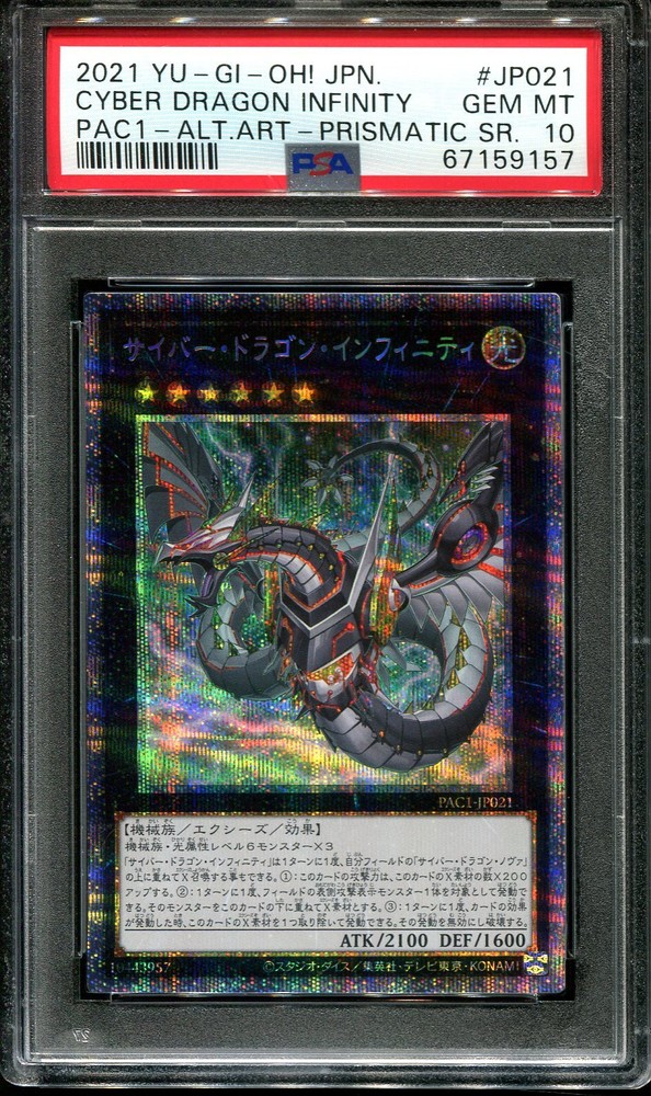 πππ YUGIOH - PSA 10 - CYBER DRAGON INFINITY - JP021 - PRISMATIC ALT ART JAPANESE This card is officially graded. They are scanned with card sleeves on them to protect the case.I have 3 cats. There may be cat hairs on the scan. Any dust/scratches noticed on the case are on the sleeve. Please enquire if you require additional information about the item. πππ YUGIOH - PSA 10 - CYBER DRAGON INFINITY - JP021 - PRISMATIC ALT ART JAPANESE This card is officially graded. They are scanned with card sleeves on them to protect the case. I have 3 cats. There may be cat hairs on the scan. Any dust/scratches noticed on the case are on the sleeve. Please enquire if you require additional information about the item. Γ Γ Γ Γ Γ Γ Buy now and save! Shipping info Click the Shipping & Payments tab above the listing description for more info Click the Shipping & Payments tab above the listing description for more info! Additional delivery notes PICK UP OPTION Sorry, our items are NOT available for pick-up. PAYMENT Immediate payment is required upon selecting "Buy It Now" or upon checking out through the cart. We accept payment via All Major Credit Cards (Visa, Mastercard, AMEX, Discover), Google Pay, PayPal, & Apple Pay (on mobile & eBay App). Thank you for shopping with us on eBay! Additional Information No additional information at this time Ask seller a question You might also like πππ GALAR FRIENDS 258/184 PSA 10 POKEMON VMAX CLIMAX JAPANESE FULL ART SR πππ YUGIOH - PSA 10 - BLUE EYES WHITE DRAGON - JP012 - PRISMATIC GOD BOX JAPA πππ YUGIOH - PSA 10 - BLUE EYES ABYSS DRAGON - JP005 - JAPANESE LGB SPECIAL P πππ YUGIOH - PSA 10 - FORTUNE LADY EVERY - JP038 - 20TH SECRET RARE JAPANESE Contact To contact our Customer Service Team, simply click the button here and our Customer Service team will be happy to assist. Ask seller a question Β© PokemonSteve Shipping & Payments Click the Shipping & Payments tab above the listing description for more info Payment Accepted Payment Methods Immediate payment is required upon selecting "Buy It Now" or upon checking out through the cart. We accept payment via All Major Credit Cards (Visa, Mastercard, AMEX, Discover), Google Pay, PayPal, & Apple Pay (on mobile & eBay App). Thank you for shopping with us on eBay! Returns Returns are accepted Items must be returned within 30 days of the auction ending Seller will pay for return shipping. eBay integration by