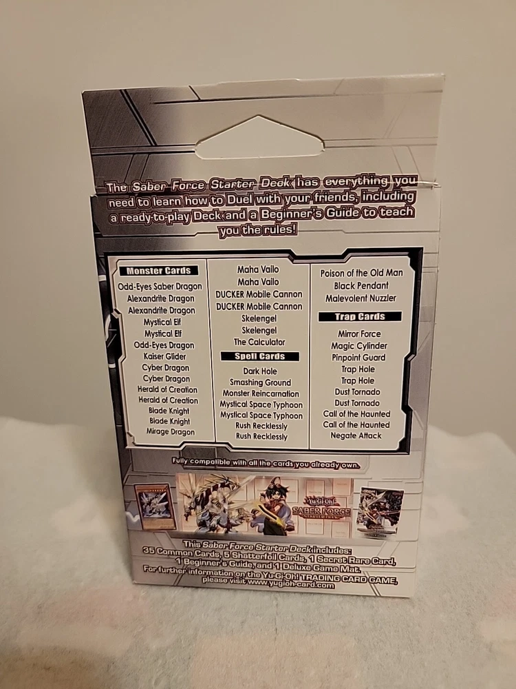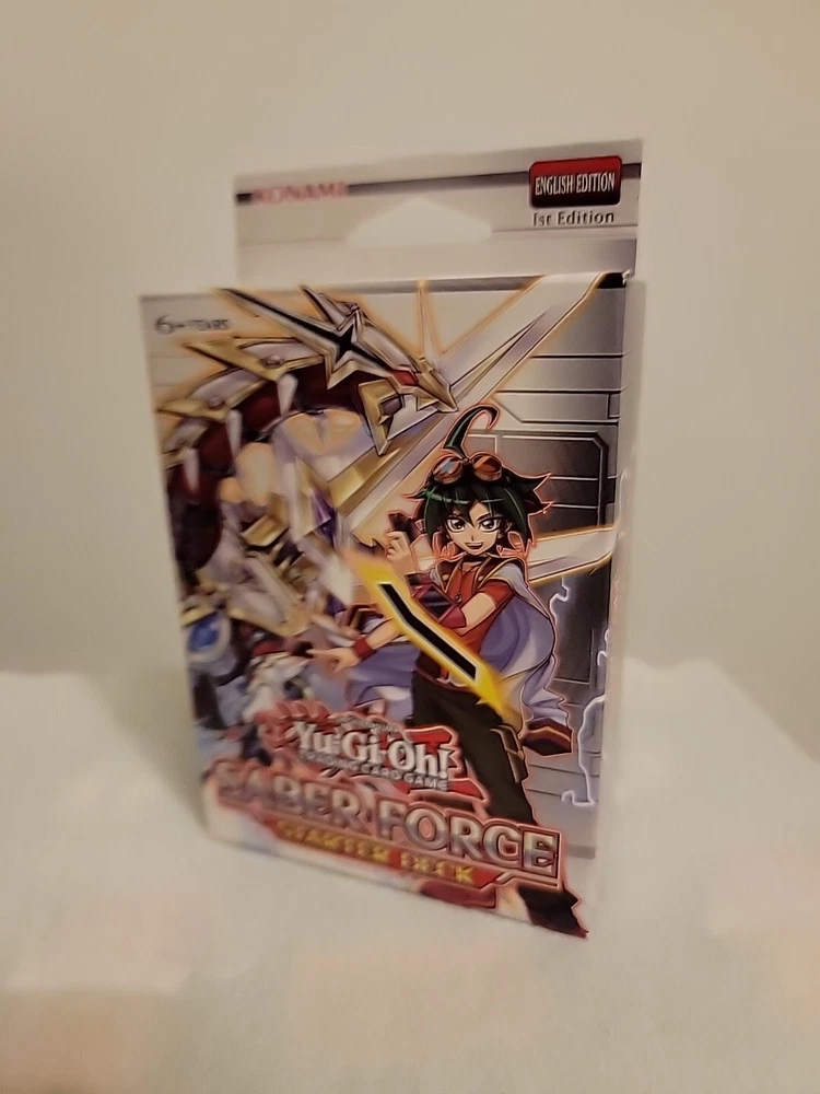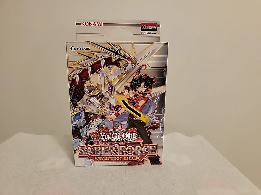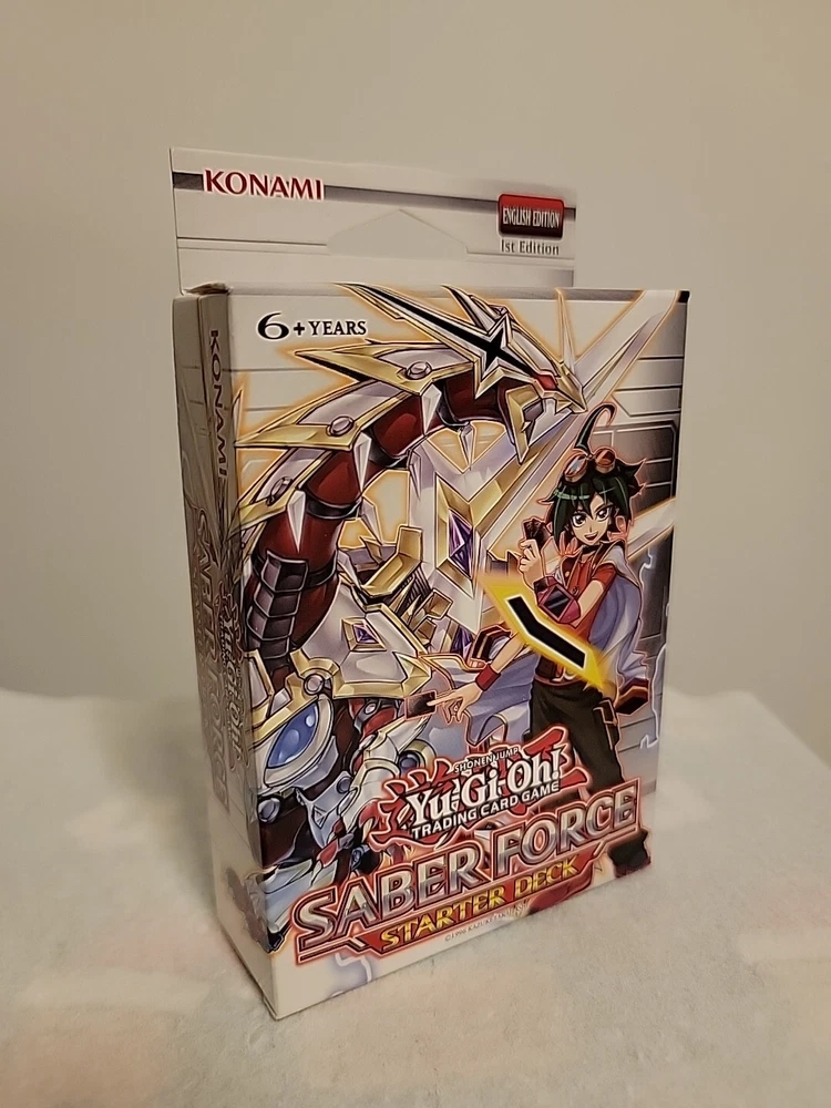 This YUGIOH Saber Force Starter Deck is a must-have for any fan of the Yu-Gi-Oh! TCG game. The deck comes in a standard size and is made of high-quality card stock material. It features the Cyber Dragon archetype and includes 41 cards in total. This 1st Edition English Edition deck is manufactured by Konami and is still sealed in its original packaging. The deck is perfect for those who are just starting to play the game or for collectors who want to add a rare and valuable item to their collection. Don't miss out on this opportunity to own a piece of Yu-Gi-Oh! history.