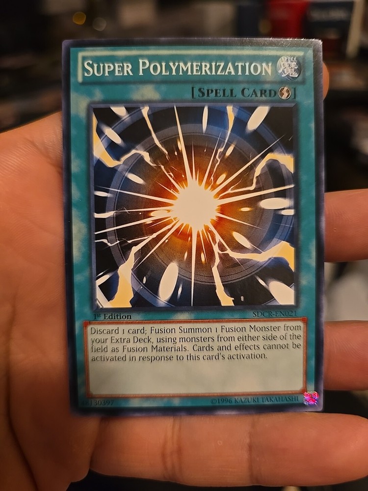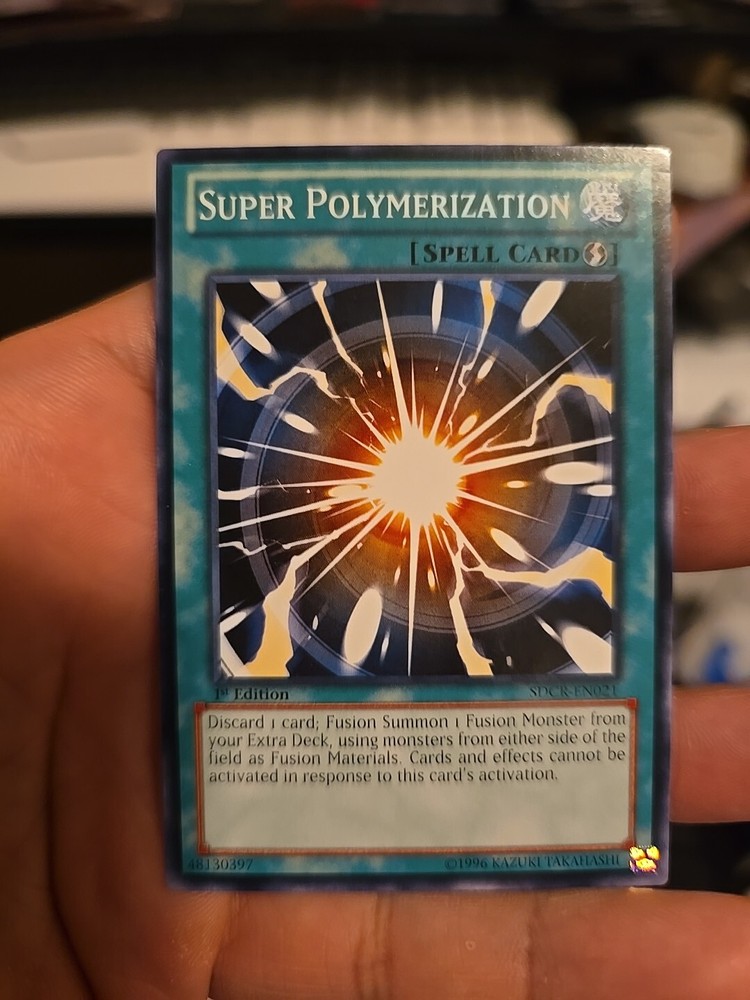 This rare and highly sought-after Yu-Gi-Oh! Super Polymerization card is a must-have for any serious collector or player. With its Japanese card size, Cyber Dragon Revolution set, and SDCR-EN021 card number, this card is sure to impress. Made from high-quality paper material and manufactured by Konami in the United States, this 1st edition card is a common rarity and suitable for ages 6 and up. It is a spell card type and comes in English language. The card is not autographed, does not come with any custom bundle, and is not vintage. It is perfect for anyone who wants to start playing Yu-Gi-Oh! TCG or who wants to add a valuable card to their collection. Don't miss out on the opportunity to own this amazing card.