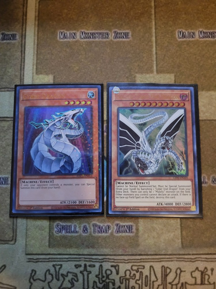 YUGIOH TCG CYBER DRAGON HAC1-EN014 ULTRA DUEL TERMINAL 1ST EDITION + MALEFIC CYBER END DRAGON GFP2-EN101 ULTRA 1ST EDITION ALL NEAR MINT YOU GET WHATS SHOWN IN THE PICTURE AND DESCRIPTION ALL CARDS ARE SHIP WITH PROECTIONS. ALL CARDS THAT IS BELOW 20$ WELL BE SHIP IN PWE WITH EBAY TRACKING. 24$-21$ CARDS WELL BE WITH STAMPS PWE. CARDS ABOVE 25$ WELL BE SHIP IN BUBBLE MAIL WITH USPS GROUND SHIPPING TRACKING. IF YOUR ORDERS ADDS UP TO 25$ OR ABOVE IT WOULD BE ALSO IN A BUBBLE MAILER. IF YOU ARE FROM PUERTO RICO AND ARE BUYING MAKE SURE YOU HAVE "COUNTRY LIST AS UNITED STATES NOT PRI" OR ELSE I CAN'T PRINT EBAYSHIPPING LABEL WITH TRACKING AND WELL SENT ITEM BY STAMPS TO YOU. THANKS. To international buyers since I have been having many buyers that are using Fright Forward Services. YOU ARE BUYING AT YOUR OWN RISK. As I list in my description, I ship using PWE (Plain White Envelope) for cards that does not reach $25 and above. I do not know how the Fright Services pack it after mailing it to them. All I know is that many of the PWE does not make it to its original destination (your real home address) either it's the Fright Services fault for not packing it in bubble mailer or Usps for losing it in transit. If it is being send by PWE by the Fright Services, it made take months before getting there. Also, in case if its lost or does not make it to its destination you must direct your attention to the Fright Services before contacting me. It is not my responsibly for lost mail(item) due to 3rd party delivery. To make sure you get your cards to you faster and more accuracy you must order cards combining to $25 or above that way I can use Ground Advantage and send it in bubble mailer most of the bubble mailer I use will make it to its destination. Thank you. *UPDATED* REFER TO MY STORE 7/1/2025. IF YOU CAN LEAVE FEEDBACKS THAT WOULD BE MUCH APPRECIATE THANK YOU FOR BUYING.