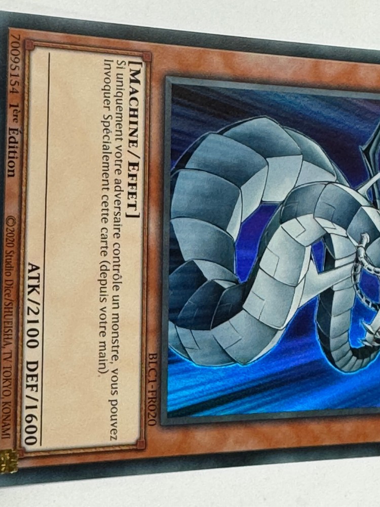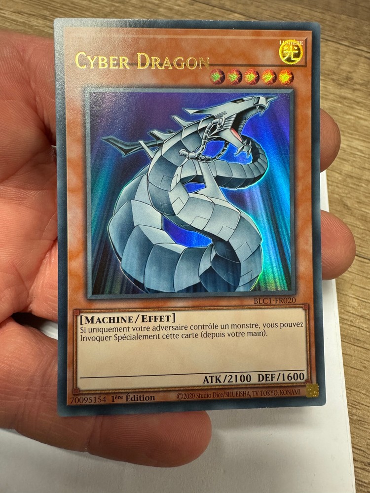 Je vend une carte MISSPRINT de yugioh! ref "Cyber Dragon ref BLC1-FR020-Mp UR Misprint" vraiment en bon etat bien regardez les photo vendu exactement comme presenter, toujour sous slive et top loder envoi rapide et soigné