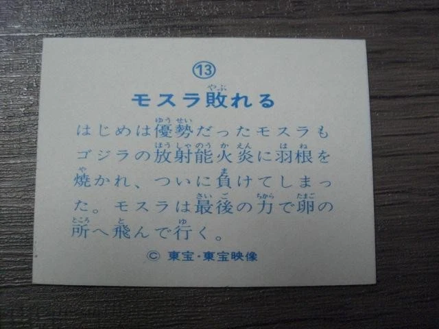 Item Title Yamakatsu Godzilla Vs Mothra Card 26 Green Box Payment Supports managed payments Please pay within 5 days after auction is finished. About Us We are located in Japan. It's our pleasure to make you happy by proposing our recommend item. If you have any questions or request about items, please feel free to ask us. International Buyers - Please Note: -Import duties, taxes, and charges are not included in the item price or shipping charges. These charges are the buyer's responsibility. -Please check with your country's customs office to determine what these additional costs will be prior to bidding/buying. -These charges are normally collected by the delivering freight (shipping) company or when you pick the item up - do not confuse them for additional shipping charges. -We do not mark merchandise values below value or mark items as - gifts - The US and International government regulations prohibit such behavior. Thank you for your understanding.