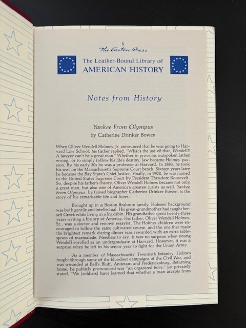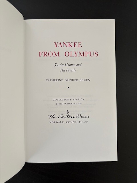 Yankee From Olympus by Catherine Drinker Bowen. Published by The Easton Press in 1990. Collector's Edition Bound in Genuine Leather. The condition is Fine.