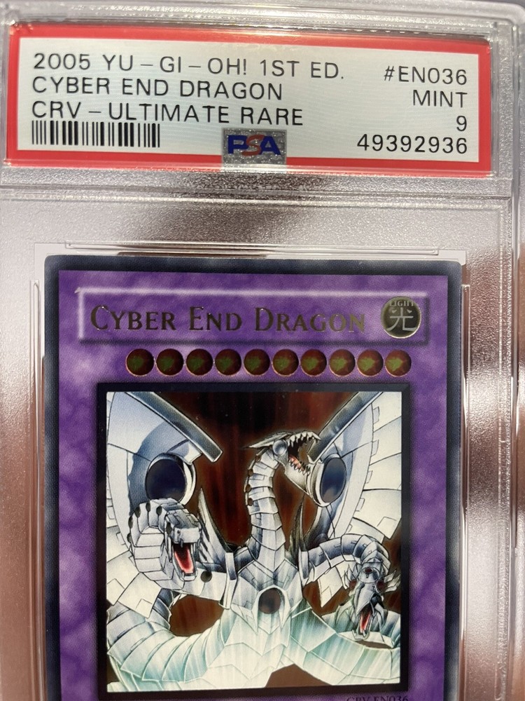 Yu-Gi-OH! 1st Ed Cyber End Dragon Ultimate Rare CRV-EN036 PSA 9 MINT Super Clean. Shipped well protected and insured!! Signature will be required