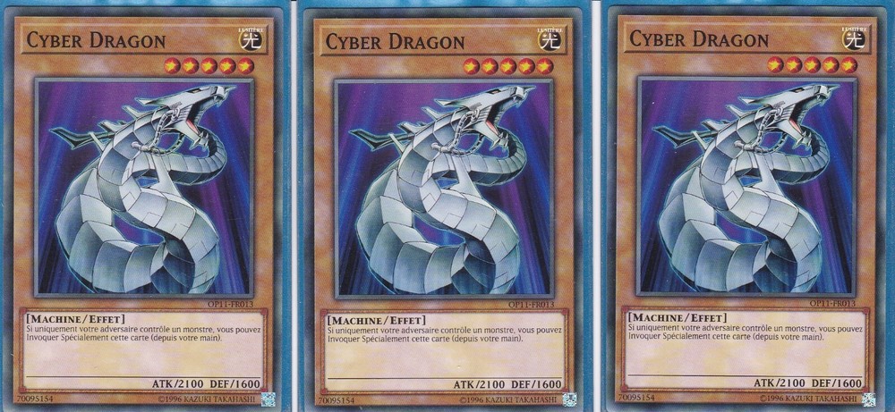 Vous enchérissez sur l'objet suivant : Yu-Gi-Oh! 3x Cyber Dragon (OP11-FR013) !! Les 3 cartes sont en excellent état. Elles vous seront envoyées dans les 3 jours ouvrés suivant la fin de la vente par Lettre Suivie après avoir été protégées de façon optimale à l'aide d'un top-loadder (protection en plastique rigide). N'hésitez pas à consulter mes autres objets mis en vente ! Etant donné que la nouvelle directive européenne prévoit désormais une garantie d'un an même pour les ventes privées - dans la mesure où le vendeur ne l'exclut pas - je déclare ne pas fournir de garantie pour mes articles vendus. Avec l'achat de la marchandise, vous acceptez expressément de renoncer à la garantie. Sur tous les articles neufs et d'occasion achetés chez moi, il n' y a pas de droit de rétractation, aucune garantie, aucun retour ou aucun échange. Chacun de mes envois est expédié avec un numéro de suivi après avoir été protégé de façon optimale mais je ne suis pas responsable des éventuels défauts qui existaient avant l'expédition et je n'assume aucune responsabilité ou frais pour les pertes et / ou dommages durant le transport.