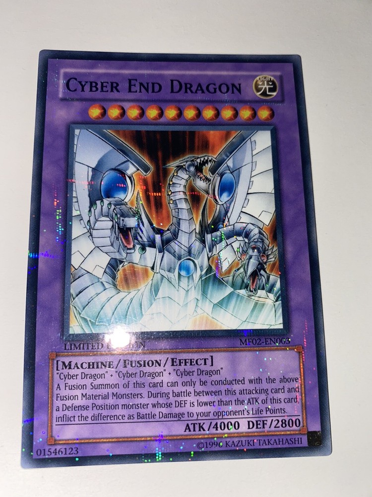 CYBER END DRAGON - MF02-EN003 en prismatique rare limited édition Les cartes sont en anglais, en très bon état (near mint to mint) Je suis un vendeur sérieux. Envoie en courrier suivi pour plus de sécurité :) International bidders are welcome.