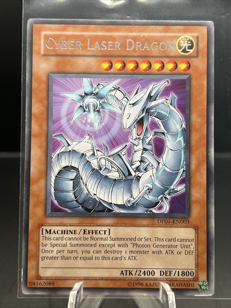 You are buying : “ YuGiOh - CYBER LASER DRAGON DP04-EN003 Rare LP " Card Condition: LP - See pictures for exact condition Card will be shipped within one business day of received payment and sent within a penny sleeve, top loader and team bag while protected with card board and shipped securely within a bubble mailer to ensure no damage in transit. This card will be shipped with standard letter mail shipping within Canada and tracked shipping Internationally. Worldwide shipping available. If you have any questions regarding this item, any other items, combined shipping inquiries or anything else please reach out and we will get back to you as soon as we can. Now offering consignment! Message us for more info. Save us as a seller! We post hundreds of new listings weekly!