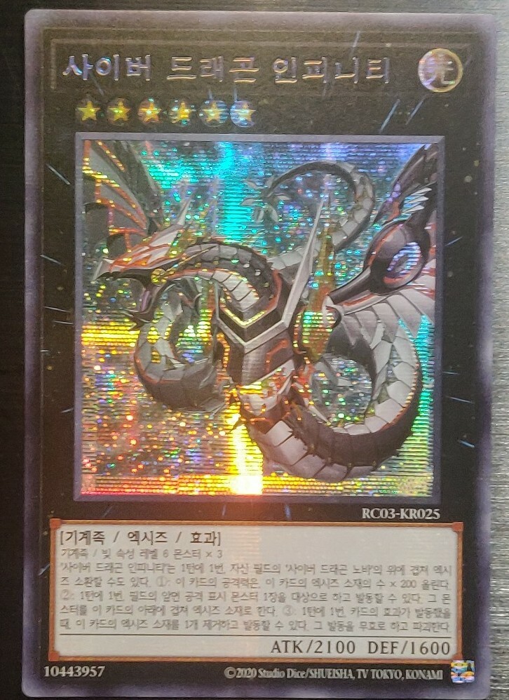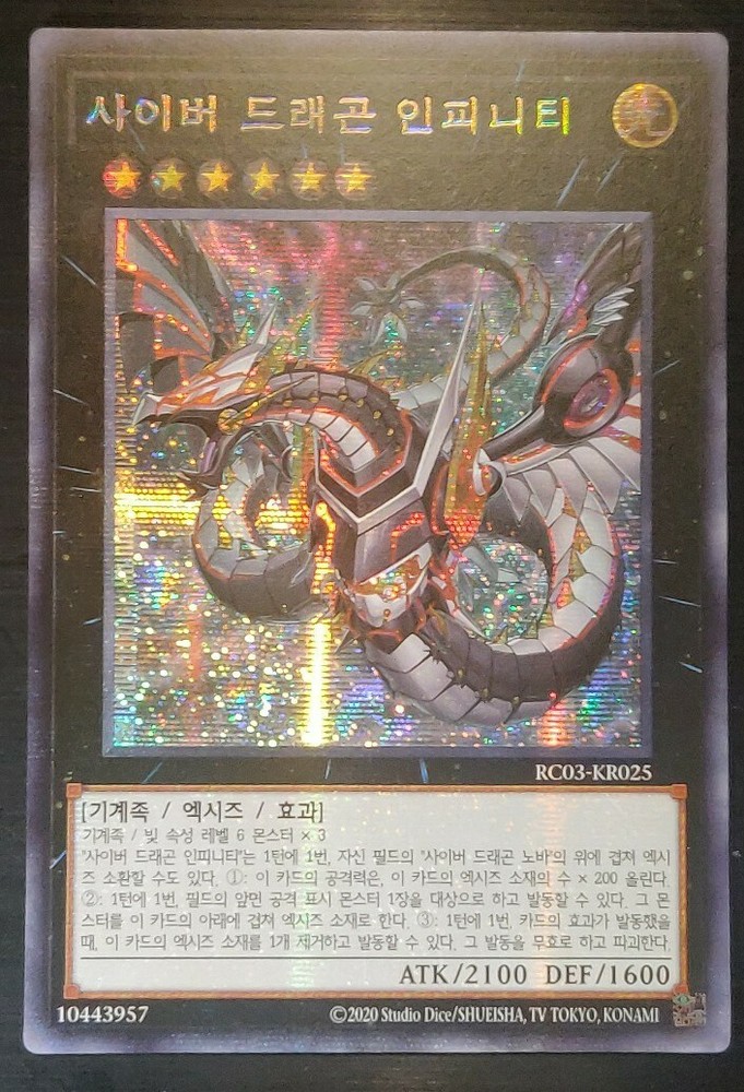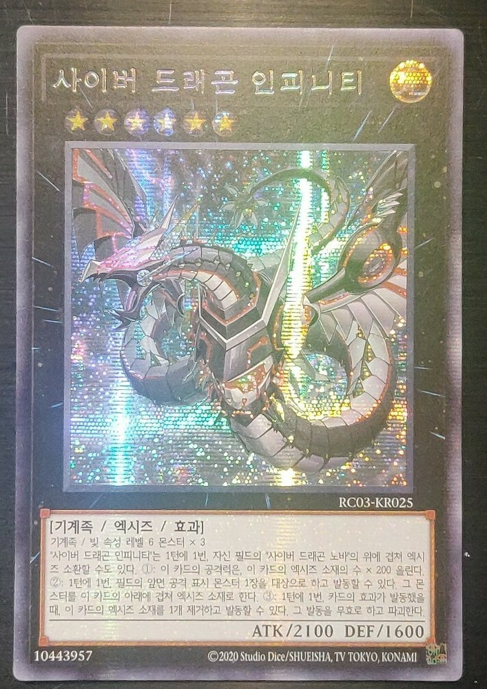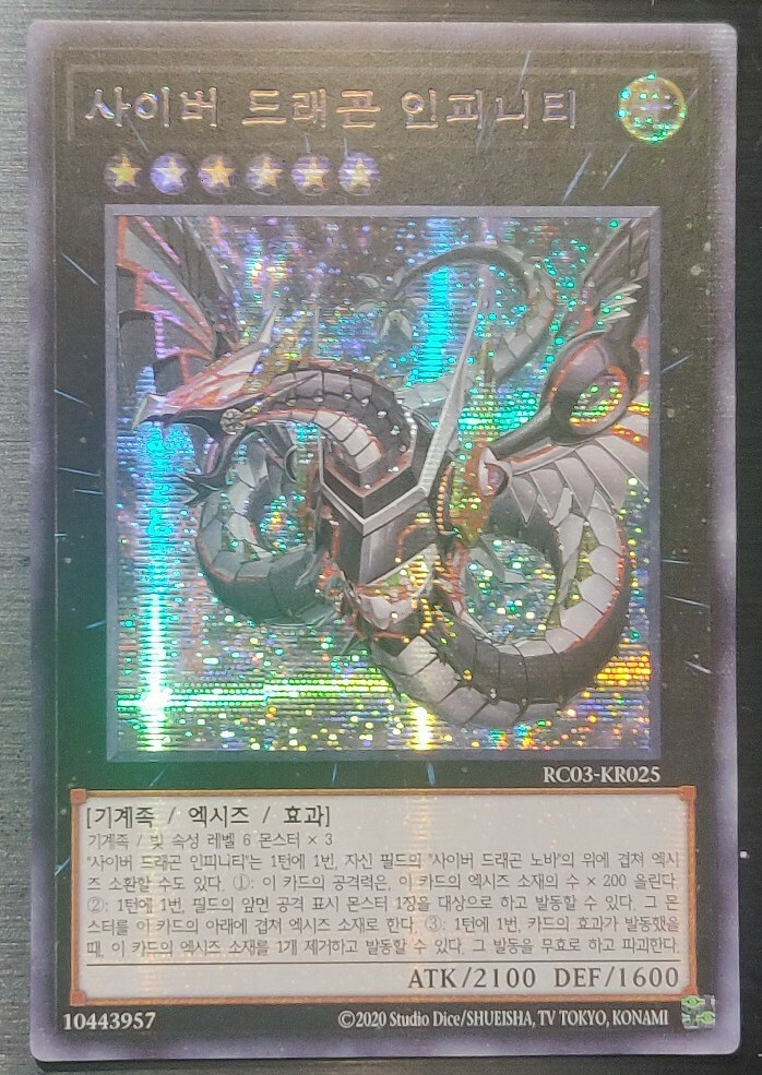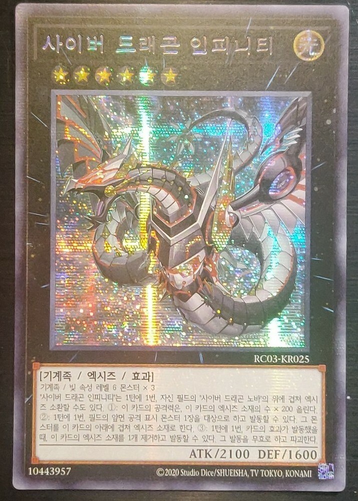 SECRET PRISMATIC PARALLEL RARE version of Cyber Dragon Infinity! ABSOLUTELY GORGEOUS HOLOGRAPHIC CARD, PLEASE LOOK AT ALL PHOTOS IN THE LISTING! ABSOLUTELY A MUST HAVE card for all collectors! The card is in Mint / NM condition. Condition is New. Shipped with USPS First Class Package. 100% AUTHENTIC BUY WITH CONFIDENCE This card is in the Korean language. Please note that this is not the English version of the card. You will receive the card in the photos in my listing in a safe protective hard case. Thank you for looking at my listing.