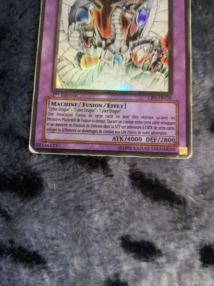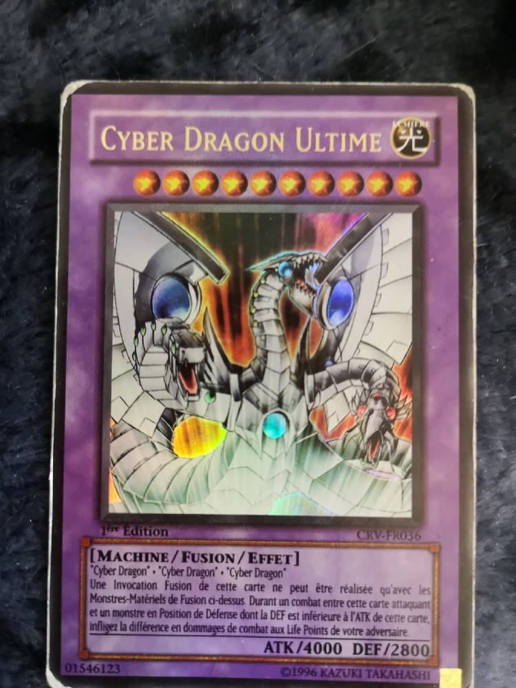 Tous les envois de cartes sont protégés. Les frais de port ne sont payés qu'une seule fois pour un groupement de cartes (10 cts par carte supplémentaire), l'ajustement se fait automatiquement au moment du paiement. Every card is protected. You pay only one time the sending fees (each cards added is 10cts more and not the full sending fees). It is done automatically at the payment Carte Yu-Gi-Oh! Cyber Dragon Ultime Crv Fr036 1ere Edition.