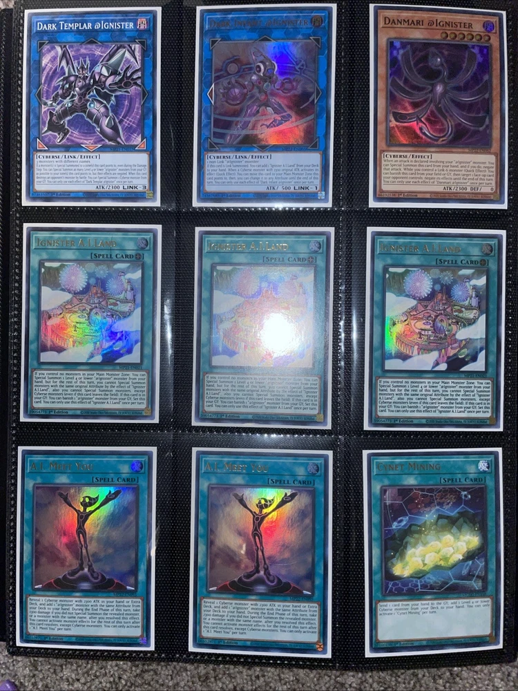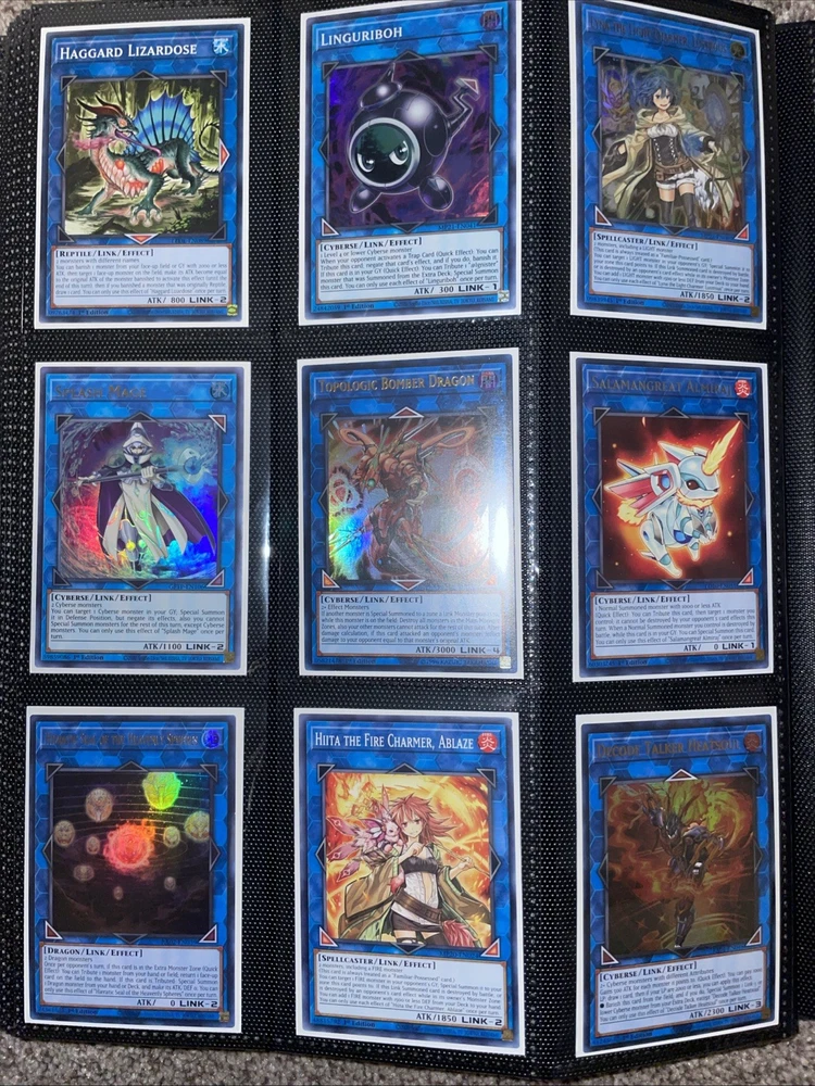 Hello! I am selling a collection binder of YuGiOh cards. You will receive EVERYTHING IN THE PICTURES AND MORE. There are 360 cards, with over 200+ being holographic! You will also receive the binder and all cards are sleeved for protection. Included cards for: Branded, Blue Eyes, Blackwing, Buster Blader, Cyber Dragon, Dinomorphia, Drytron, Goblin Biker, @Ignister, Labrynth, Evil / Live Twin, Orcust, Sharks, Snake Eyes, Super Quantal, heroes, mermails and more! Shipping is FREE within the US. Please message me with questions, thanks!