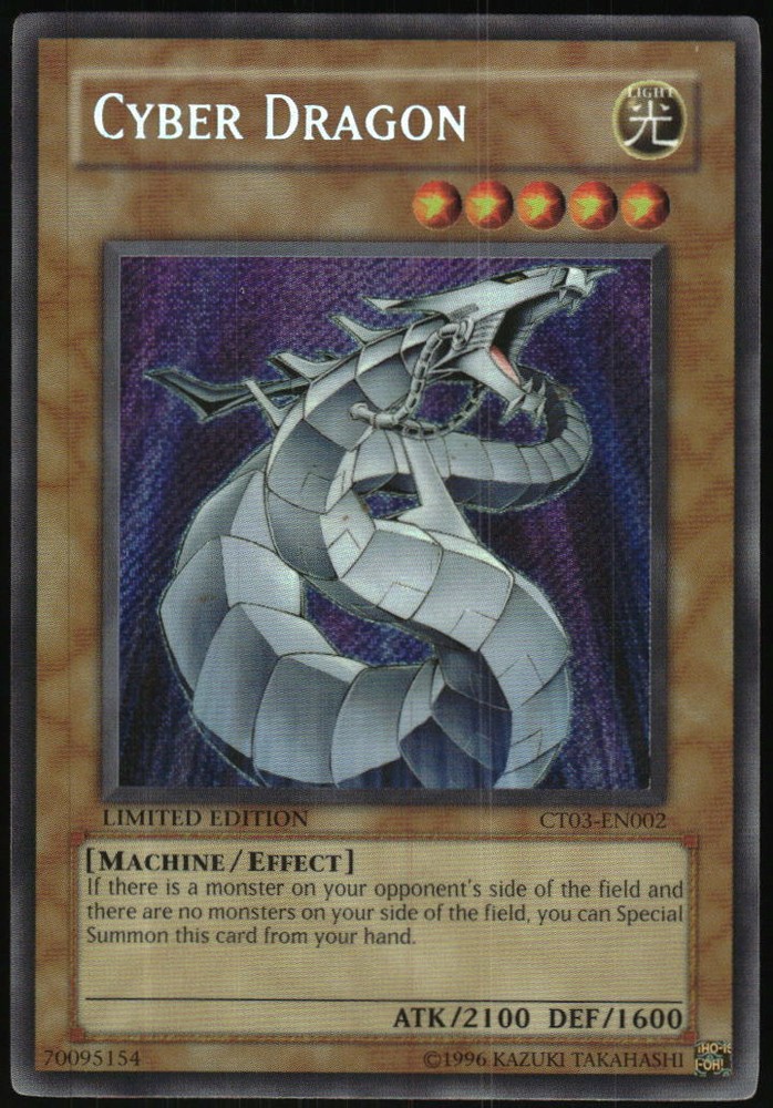 Absolutely thrilled with this Secret Rare Cyber Dragon! The 2006 Limited Edition print is stunning—the holographic foil shines beautifully, and the card arrived in excellent condition. A must-have for collectors and duelists who appreciate classic Yu-Gi-Oh! nostalgia. Perfect addition to any deck or display!