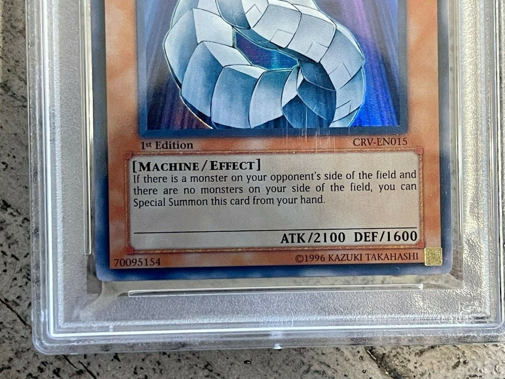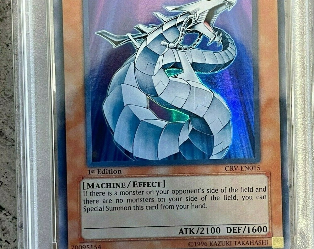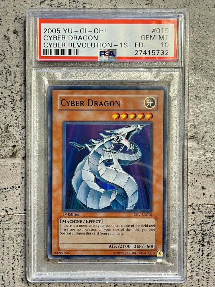 View My Feedback Click Here Visit My About Me Page Click Here Visit Ebay My World Click Here BUY WITH 100% CONFIDENCE! Yu-Gi-Oh! Cyber Dragon CRV-EN015 1st Edition PSA 10 Details: This is for (1) Cyber Dragon CRV-EN015 1st Edition PSA 10. The Card in the Pictures is the exact one you will be getting(see pics). I am not a Professional Grader nor am I responsible for the grade of the card. Includes: (1) Cyber Dragon CRV-EN015 1st Edition PSA 10 Condition: Used PSA Plastic Slab BUY IT NOW for only: $988.88 *Since this is a High End Card. This item can not be sold to anyone with a positive feedback below 10.* AUCTION DETAILS: Shipping and Handling will be Expedited Shipping (Priority Mail or First Class) Delivery Confirmation Included. (US only) International Shipping Available. We only ship to verified confirmed paypal addresses. International Buyers ? Please Note: Import duties, taxes, and charges are not included in the item price or shipping cost. These charges are the buyer's responsibility. Please check with your country's customs office to determine what these additional costs will be prior to bidding or buying. PAYMENT : We accept Paypal. Payment must be received within 24 hours of auction end. If not received, item will be relisted. Buyer will also be reported to ebay. Items will be shipped within 24-48 hours of payment received via Ebay/PayPal. RETURNS: If you are not completely satisfied with the item, then please contact us with any issues you may have. We try our best to describe every item as accurate as possible, but sometimes things do get missed. We will work with you to make sure every transaction is a pleasant one. No returns on electronics. All electronics sold as is. Refund or exchange will be given if there was a mistake made or item not as described. Please Note: eBay fees and shipping and handling costs are Not refundable. FEEDBACK: Please leave feedback once you receive your item(s) so we know you received your item(s). We will leave feedback afterwards. PLEASE Contact Seller before leaving neutral or negative feedback for items lost or damaged during shipping. Please give us an opportunity to resolve the matter to your satisfaction. We DO NOT want you to be an unhappy with your purchase. QUESTIONS If you have a question or concern, I'm more than happy to help make sure you are satisfied with the item you paid for. I do my best to help and try to answer all emails received within 24 hours.