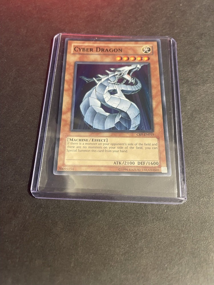 This Yu-Gi-Oh! card is a must-have for collectors and players alike. With a holographic finish and unlimited features, the Cyber Dragon CRV-EN015 is a super rare card that is highly sought after. This machine-type monster boasts a powerful attack of 2100 and a defense of 1600, making it a force to be reckoned with on the battlefield. The card is printed in English and belongs to the Cybernetic Revolution set, with a card number of CRV-EN015. Its small Japanese size adds to its uniqueness. Whether you're a seasoned collector or just getting started, this Cyber Dragon card is sure to impress. Don't miss out on the opportunity to add it to your collection or deck. Shipped in soft sleeve and top loader.