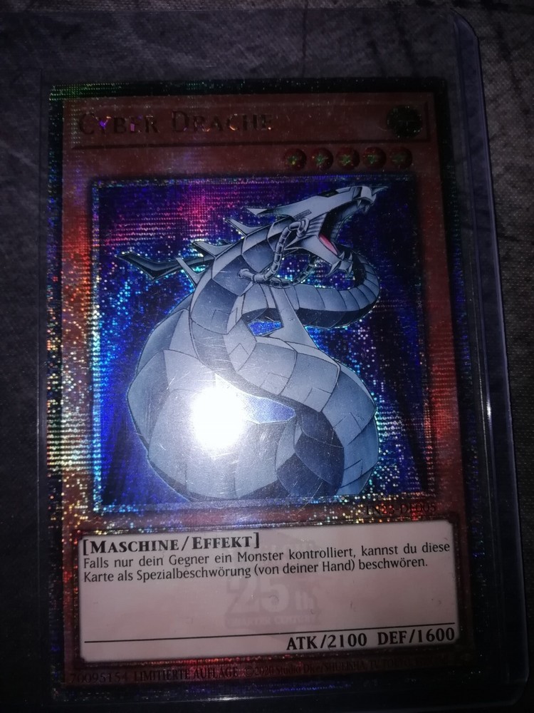 Yu-Gi-Oh! Cyber Dragon Drache TN23-DE005 25th Anniversary Tin Near Mint. Diese Karte stammt aus dem Set "Yugi" und gehört zur Rarität "Quarter Century". Hergestellt wurde sie von Dragon und ist in einem nahezu neuwertigen Zustand. Die Karte ist perfekt für Sammler und Fans des Yu-Gi-Oh! TCG geeignet.