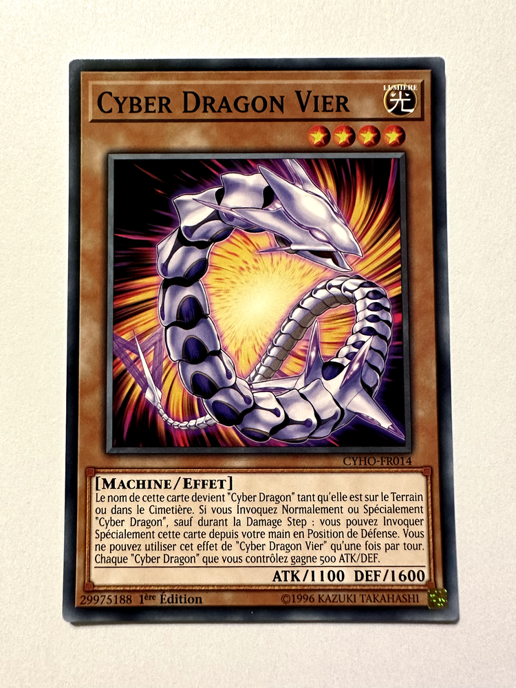 Merci de bien regarder la ou les photo(s). Les photos sont prises par mes soins, et non tirées d'internet. Si un produit est décrit comme "Occasion" celui si sera à évaluer par vos soins. aucune contestation ne sera possible, je suis ouvert aux multiples questions. Une réponse vous sera donnée dans la journée, n'hésitez pas. (x1) Carte Yu-Gi-Oh Série : Yu-Gi-Oh Extension : CYHO-FR014 Rareté : Commune Licence : Konami Langue : Français / French Etat : Neuf Lors de l'envoi la carte sera sous double protection, Sleeves & . D'autres boosters, decks & cartes sont disponibles dans la boutique, combinez vos achats. L'envoi OFFERT se fera en lettre suivie, pour un traçage optimal du produit.