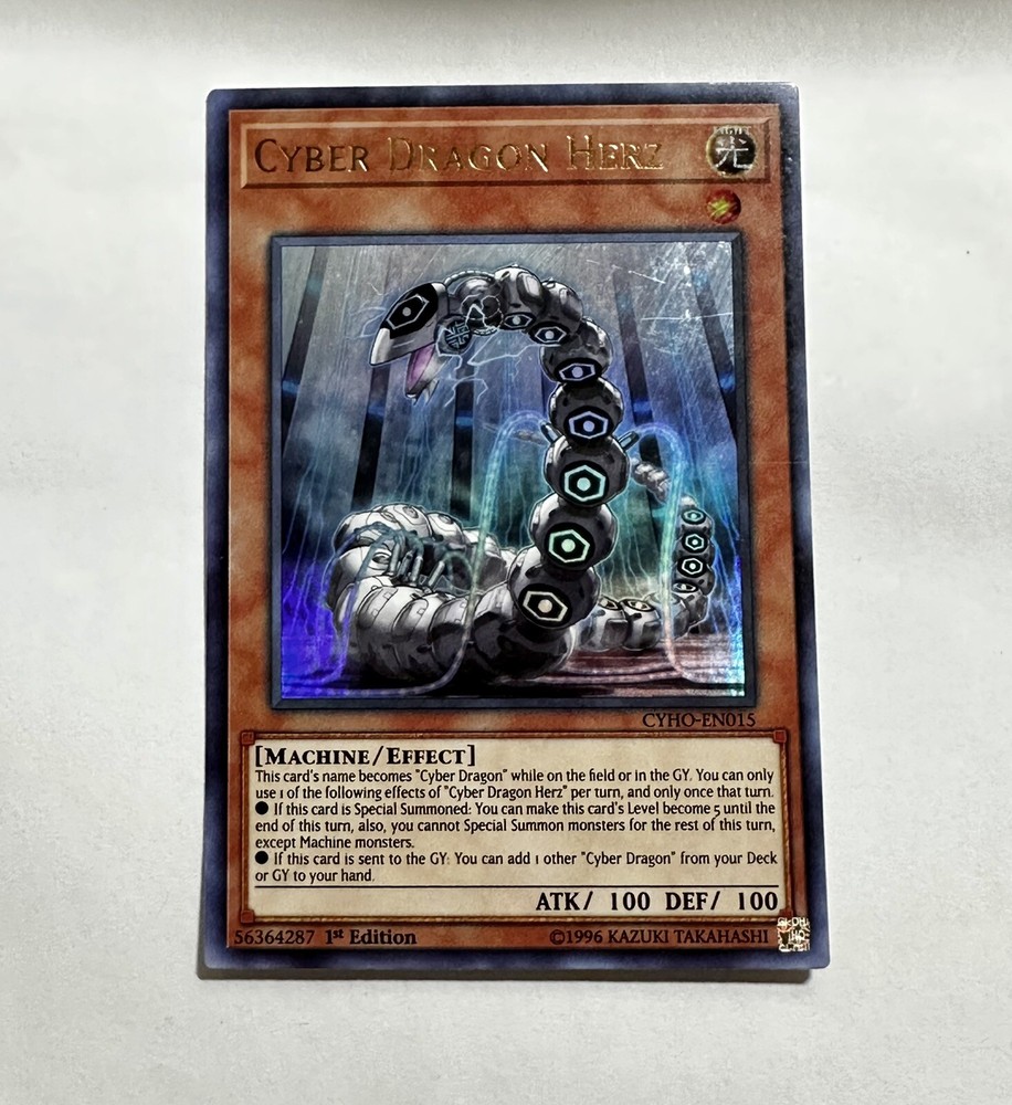 YuGiOh! Cyber Dragon Herz - CYHO-EN015 - 1st Edition - Ultra Rare. Please take a look at my other listings for I do combine shipping for a cheaper shipping rate, also if there is a specific card(s)/coin(s)/item that your looking for please don’t hesitate to ask. I may have the item you’re looking for. 🙂 This auction is a great item that you or someone you know would love to have. So please check all pictures to determine the condition for yourself, for this will be the item(s) the winner of this auction wins. SHIPPING AND RETURNS: I have a 1 day to same day handling on shipping, of course Sundays (no usps running) there is nothing I can do but get it out first thing Monday mornings. Once shipped, it will usually takes 3-5 business days to arrive at your door, sometimes less! Please be advise with the winter season coming USPS might be running slower than normal so please be patient and know that once it’s in the mail I have ZERO control of the item. I respectfully ask that you communicate with me if there is a problem before leaving a negative review. I am here to help as best as I can. Please advise that there will be NO Returns / Refunds on items as you understand your buying the item in the pictures as is. Please message me if you have any questions. Happy bidding