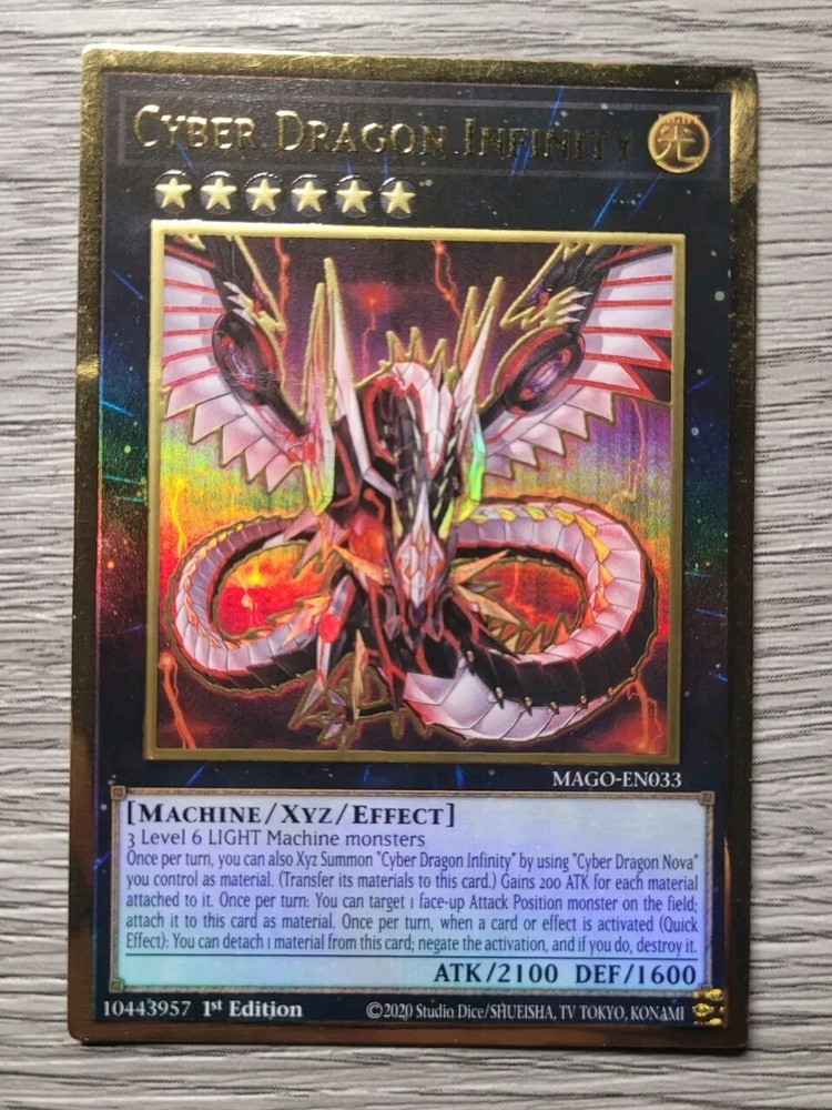 Yu-Gi-Oh! Cyber Dragon Infinity MAGO-EN033 Premium Gold Rare 1st Ed Card. Condition is Ungraded. Shipped with Canada Post Lettermail.