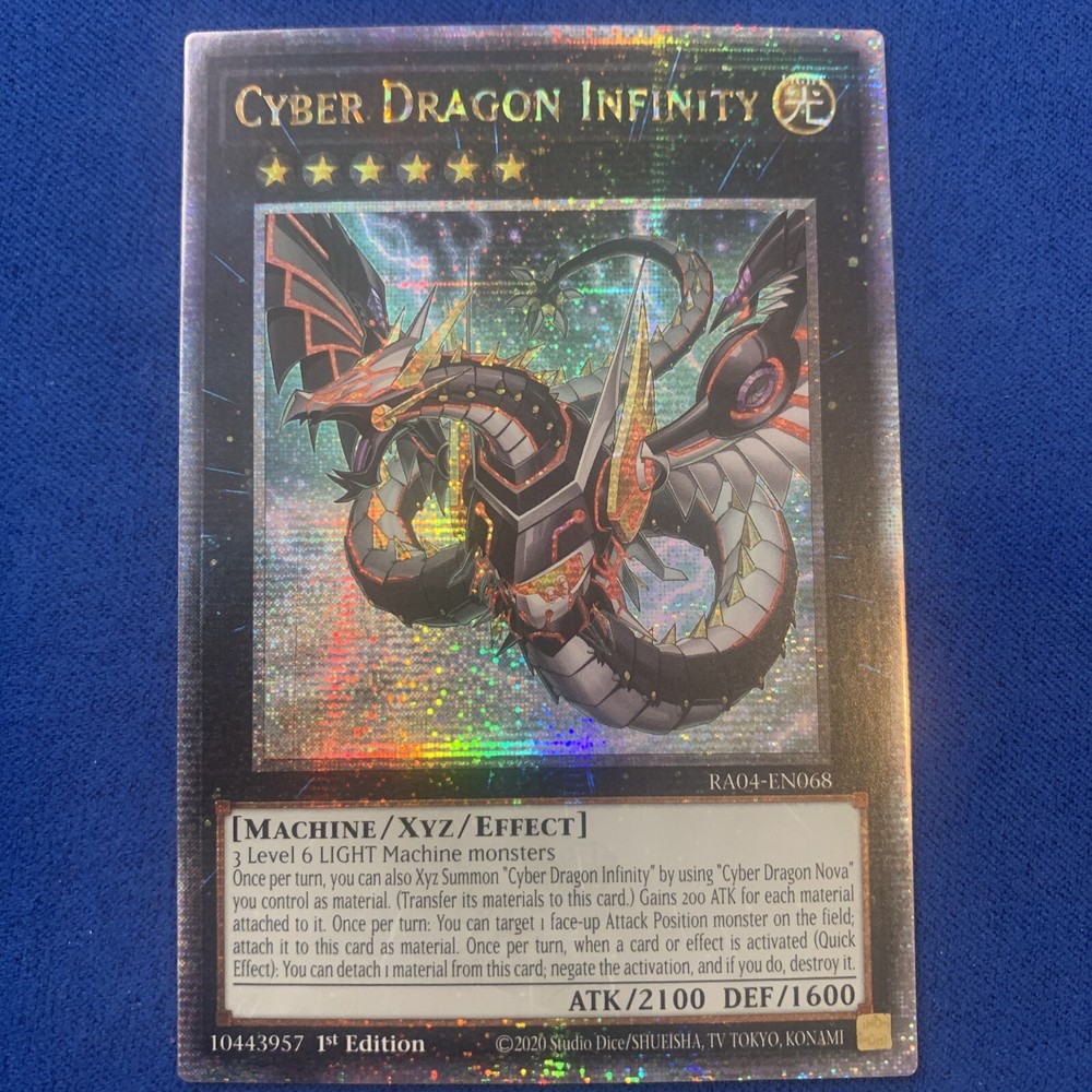 Elevate your Yu-Gi-Oh! TCG collection with the Cyber Dragon Infinity RA04, a sought-after quarter century rare card with a stunning alternate art finish. A treasure for both players and collectors.