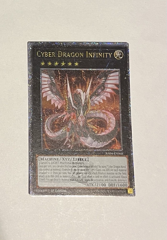 1x Yu-Gi-Oh! Cyber Dragon Infinity #RA04-EN068 Quarter Century Secret Rare 1st Edition card.