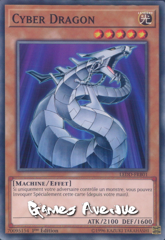 Carte à l'unité officielle : Nom : Cyber Dragon Rareté : Commune Extension : LEDD (Deck du Dragon Légendaire) Version : Française Livraison : Les articles sont expédiés sous 4 jours minimum après réception du paiement. Les cartes à l'unité sont expédiées avec protège carte ! Attention : En cas d'achats multiples pensez à regrouper vos articles en utilisant le panier d'ebay afin de faire un seul paiement ! N'oubliez pas également de nous demander le total afin d'éviter des frais de port supplémentaires et accélérer l'envoi de votre commande !