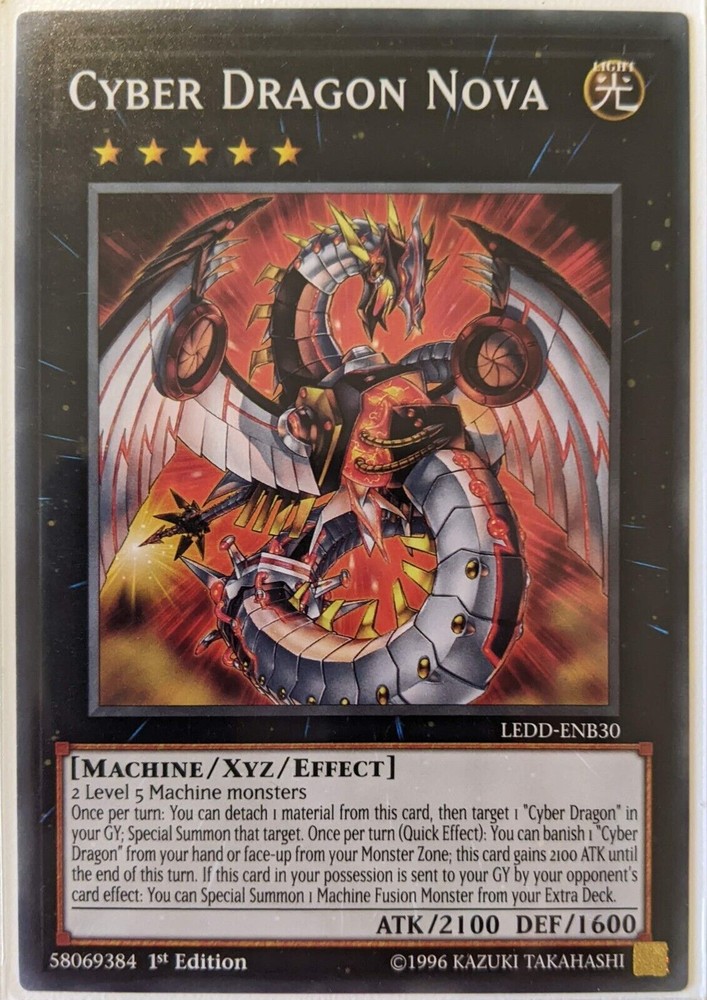 You are buying a Cyber Dragon Nova from Various Sets. Feel free to contact us if you have any Questions or Comments and we will get back to you ASAP. Our postage options: Domestic: Standard (Cheapest option) Domestic Tracked Letter (Tracked) Express (Tracked, fastest delivery) International: We currently only have Express and Registered (untracked with signature) postage due to delays caused by the current pandemic however if you interested in purchasing an item through Standard International Postage (Untracked) feel free to contact us. If you would like to combine postage over multiple items but are unable to please select the request total button or send us a message and we can help you out. Thanks for shopping with ChaosTCGAus! We Hope to see you again Listing and template services provided by inkFrog