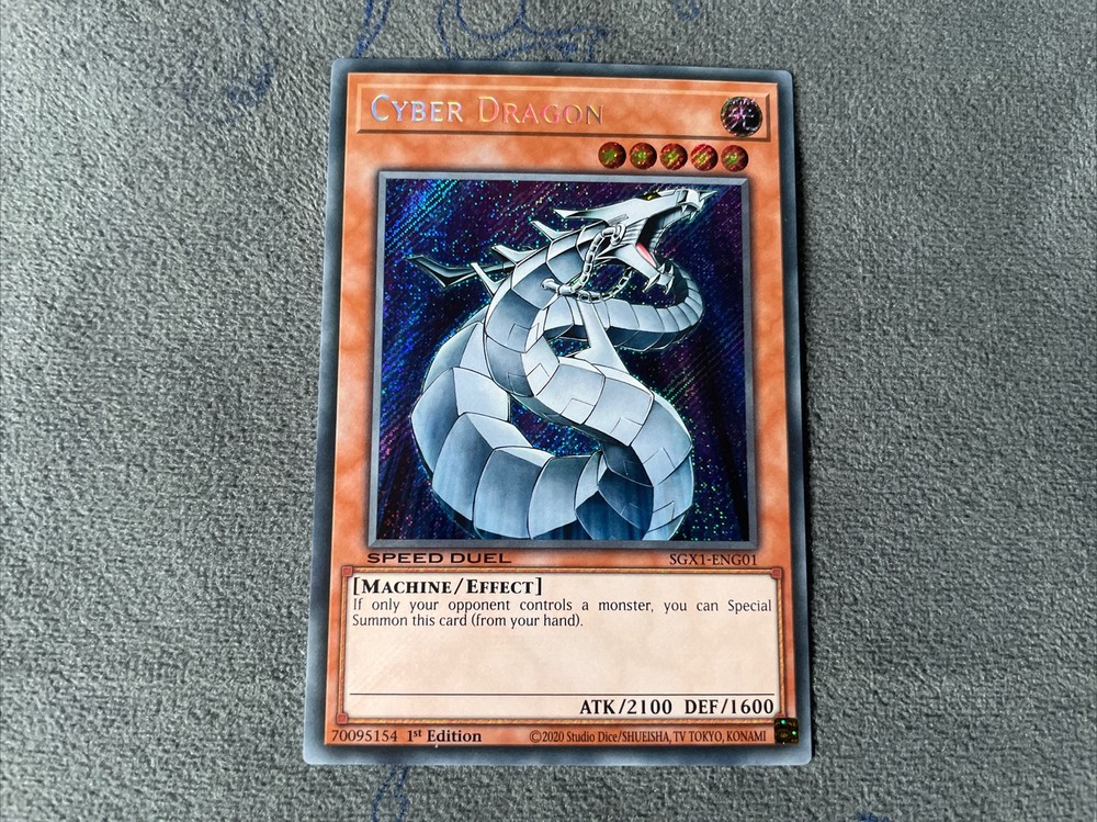 Yu-Gi-Oh! Cyber Dragon SGX1-ENG01 Secret Rare 1st Edition Speed Duel Near Mint. Condition is Ungraded. Shipped with eBay Standard Envelope for Eligible Items up to $20....