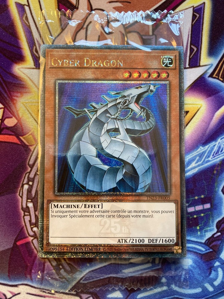 Carte Yu-Gi-Oh! Cyber Dragon TN23-FR005 1st / QCSR Etat : Neuf Langue : Français Extension : Tin Box 25e anniversaire - Les Héros du Duel Sortie : 07/09/2023 Envoie rapide et soigné sous protection. Si la carte est neuve, elle est tout juste sortie de booster et mise de suite sous protection. Si la carte est d'occasion, elle peut comporter des points blancs et/ou des côtés blanchis et/ou de fines rayures. Vous recevez toujours la carte présentée sur la photo de l'annonce. Attention : En cas d'achats multiples pensez à regrouper vos articles en utilisant le panier d'Ebay afin de faire un seul paiement . Cela facilitera le traitement de votre commande et accélérera son expédition ! Pour toute question ou réclamation, n'hésitez pas à nous contacter via Ebay . Suivez-nous sur Instagram : kuribohshop et Facebook : KuribohShop.KD Retrouvez également tous nos autres produits Yu-Gi-Oh! Bon Duel !
