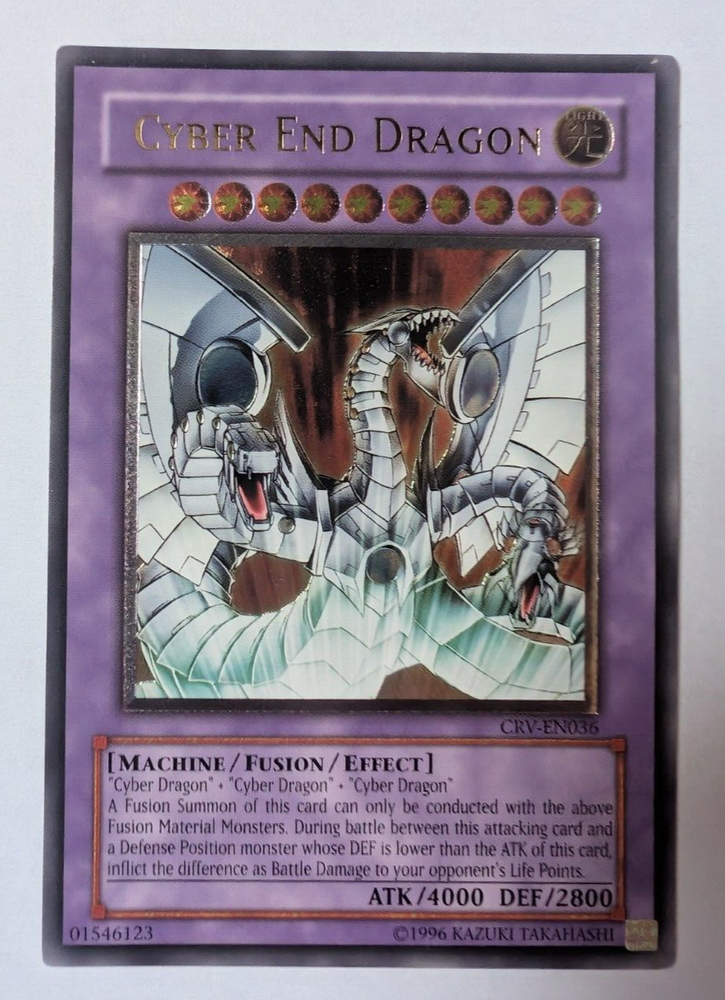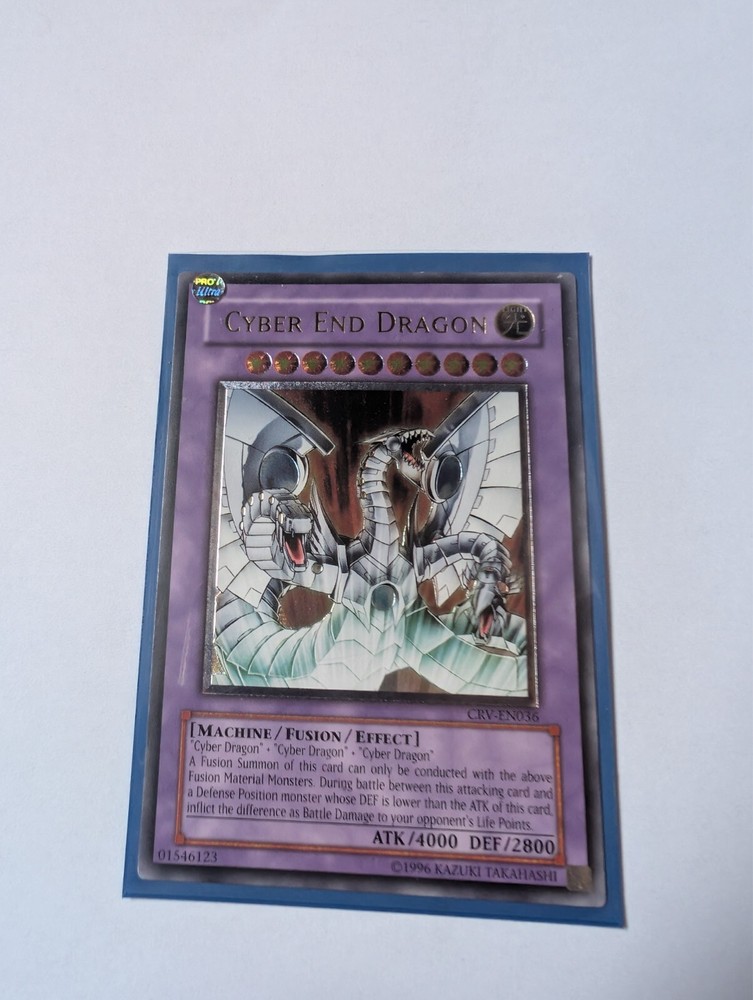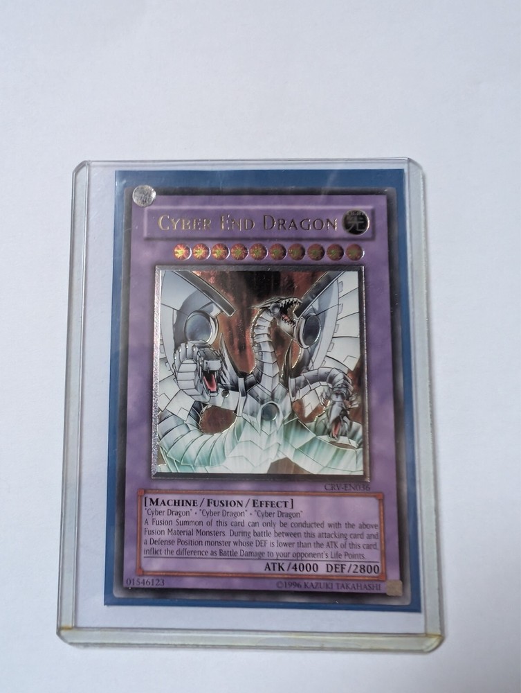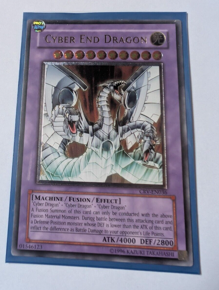 Excellent condition, very rare Cyber End Dragon CRV-EN036 English Ultimate Rare unlimited edition No signs of scuffing or wear, visually looks near mint (check photos) . Pretty sure this was straight in to a sleeve and displayed in a binder rather than played. Posted in a padded envelope (with some reinforcement) and a card protector by Special Delivery. Feedback speaks for itself. See my other items as I work my way through my binder.