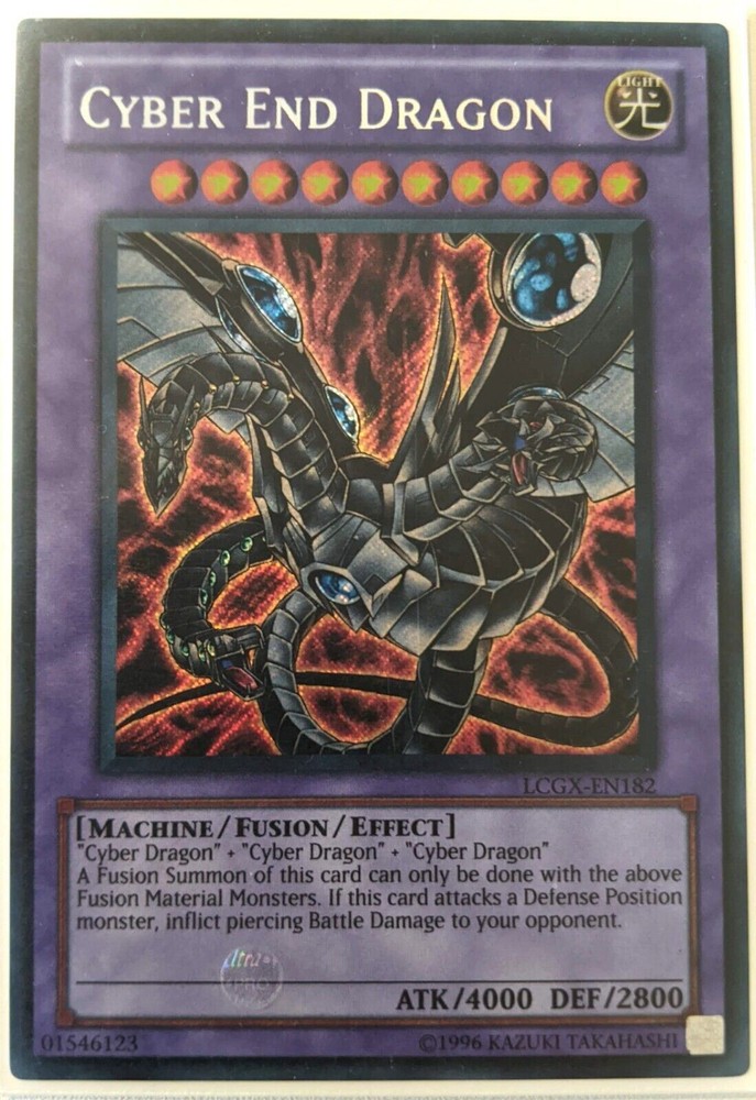 You are buying a Secret Rare Alternate Art Cyber End Dragon from LCGX-EN182 in Near Mint condition. Feel free to contact us if you have any Questions or Comments and we will get back to you ASAP. Our postage options: Domestic: Standard (Cheapest option) Domestic Tracked Letter (Tracked) Express (Tracked, fastest delivery) International: We currently only have Express and Registered (untracked with signature) postage due to delays caused by the current pandemic however if you interested in purchasing an item through Standard International Postage (Untracked) feel free to contact us. If you would like to combine postage over multiple items but are unable to please select the request total button or send us a message and we can help you out. Thanks for shopping with ChaosTCGAus! We Hope to see you again Listing and template services provided by inkFrog