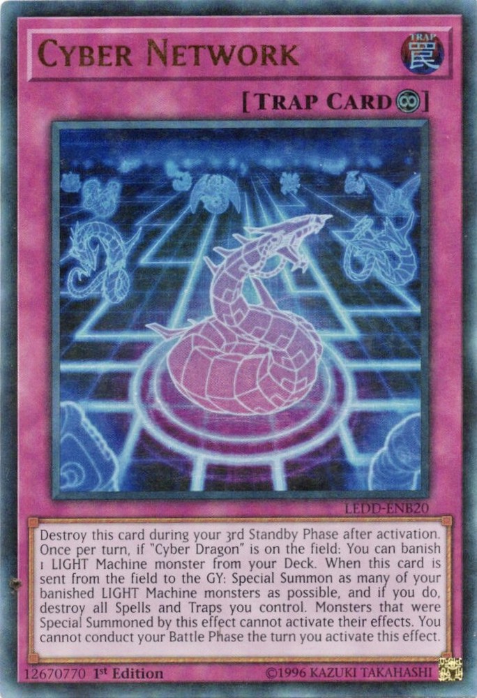 Looking for a powerful trap card to add to your Yu-Gi-Oh! TCG collection? Check out this 1st edition, ultra rare holo card, Cyber Network (LEDD-ENB20) from the Legendary Dragon Decks set. This trap card comes in Japanese card size and is made of high-quality card stock material. Featuring the iconic Cyber Network card name and manufactured by Konami in Japan, this card is perfect for players and collectors alike. Its holographic finish adds a touch of rarity and uniqueness to this already sought-after card. Add it to your collection today!