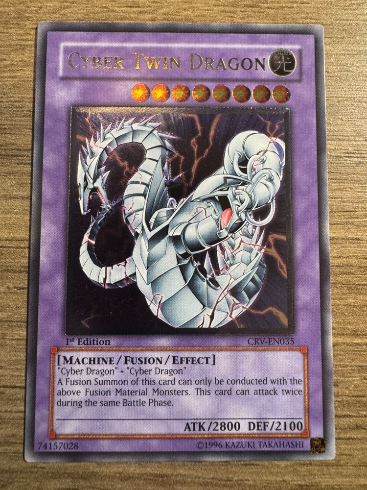 THIS LISTING IS FOR 1 X YuGiOh Cyber Twin Dragon - CRV-EN035 - 1st Edition - Ultimate rare - EURO NM! Please see photo's. Cards will be shipped out in 3 business days after purchase. ALL CARDS SOLD ARE IN NMT/MINT CONDITION UNLESS OTHERWISE NOTED I will ship with purolator, fedex or UPS while Canada Post is on strike. Good luck!
