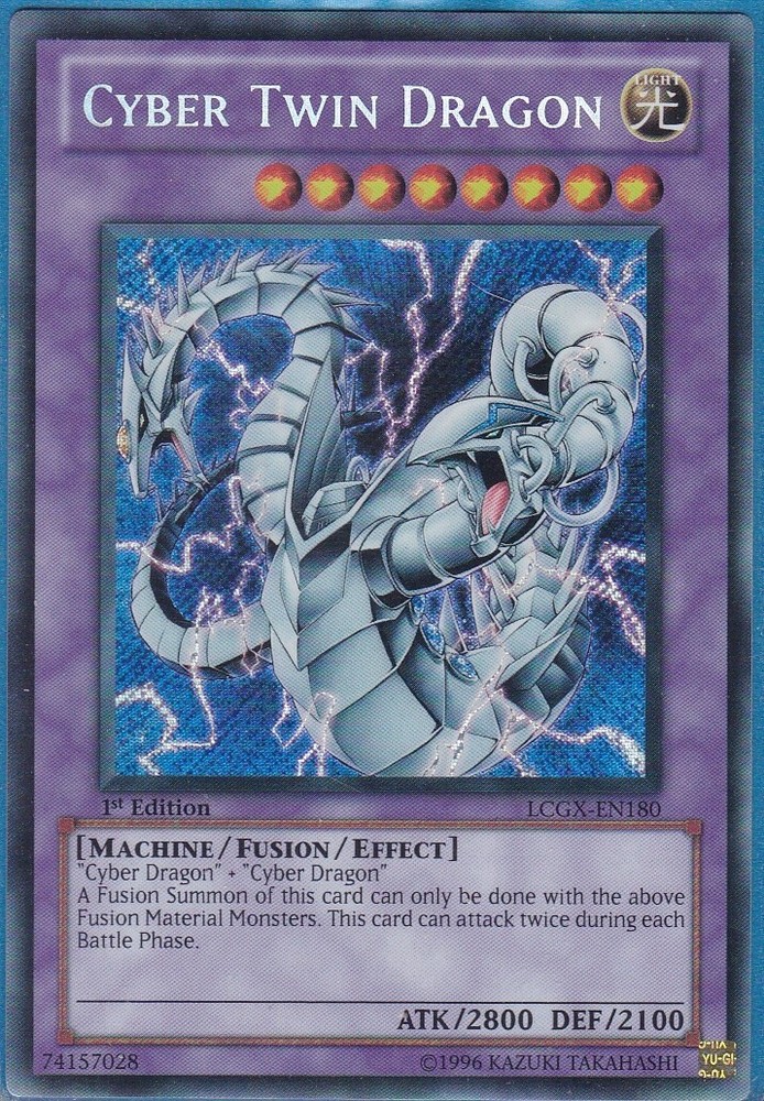 This Cyber Twin Dragon is a fantastic find for collectors! The 1st Edition Secret Rare is in near-mint condition, looking fresh out of the pack. It comes securely packed in a top-loader for safe shipping. Perfect for Edison format players or anyone wanting a pristine piece for their deck. Fast shipping and great care—highly recommended!