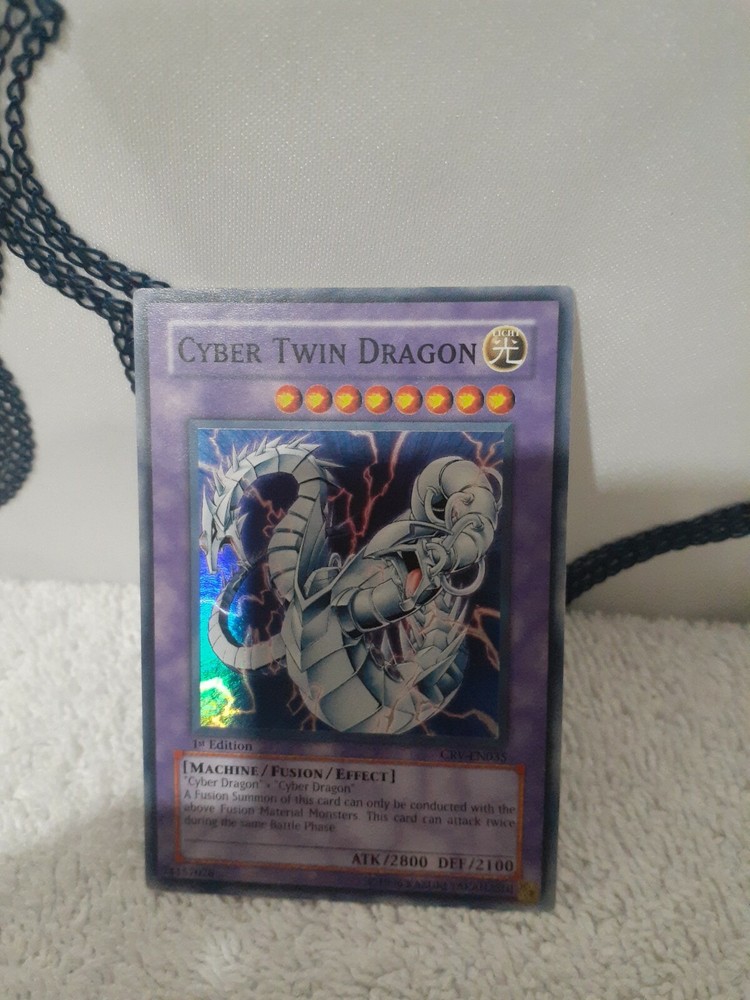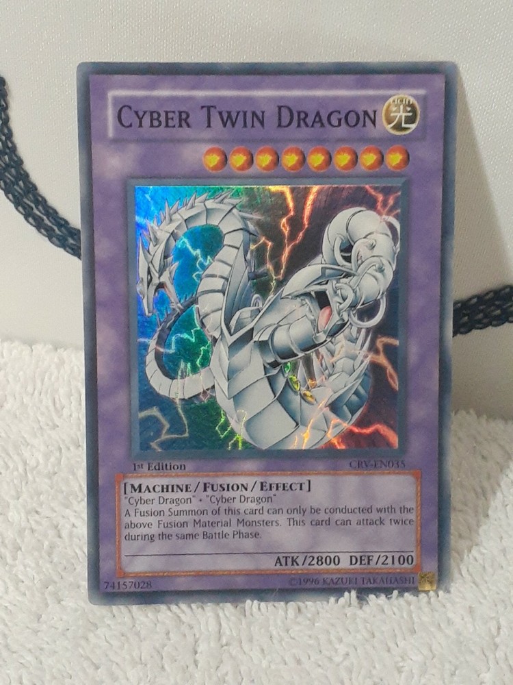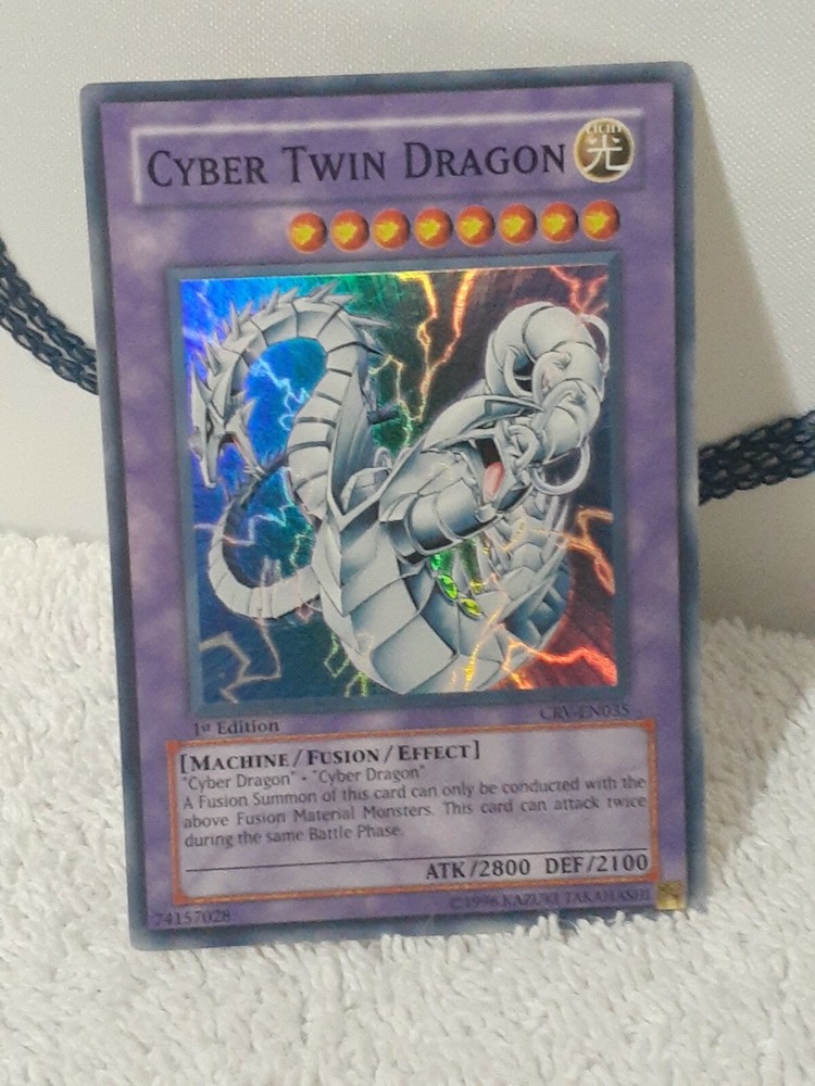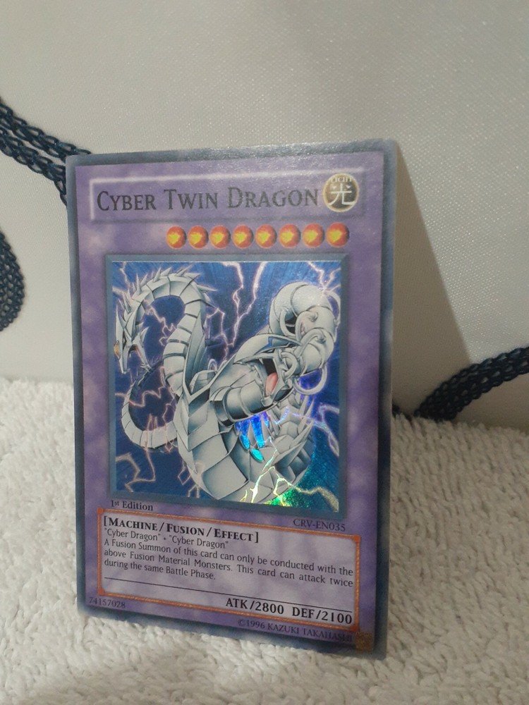 Yu-Gi-Oh Cyber Twin Dragon Super Rare 1st Ed CRV-EN035 English Played/ 1996. Condition is "Used". Shipped with Standard Shipping. I've had these cards for years in a card spiral. I will carefully pack and ship once payment is received. Fast Shipping and positive feedback. Check out my other cards. Thanks.