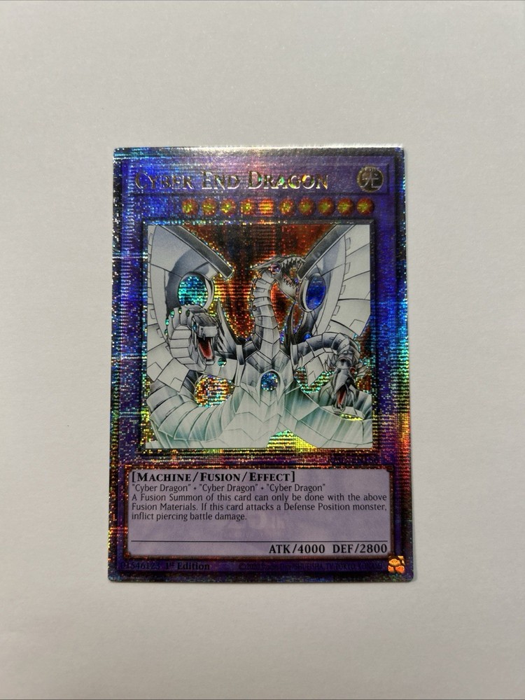 This Cyber-End Dragon card is absolutely stunning! The holographic detailing makes it pop, and as a 1st Edition Quarter Century Secret Rare, it's a true collector's gem. The card arrived in perfect condition, and the chase factor makes it feel extra special. A must-have for any serious Yu-Gi-Oh! fan—definitely worth adding to your deck or display!