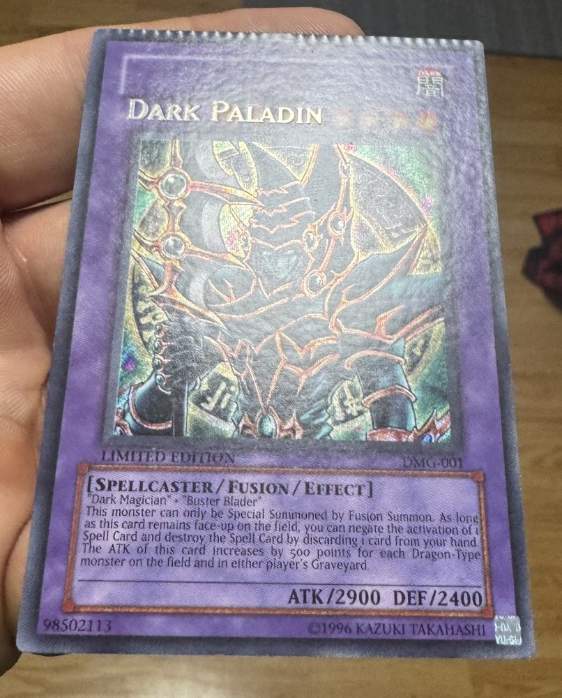 Deep name shift error, also has a slight crimp at the top of the card from factory. Card is all around great condition other than the crimp and minor waxing on the back of the card....