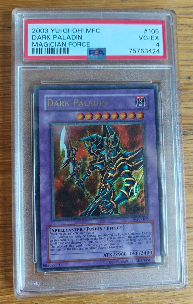 This rare and highly sought-after card is perfect for any serious collector or Yu-Gi-Oh! TCG enthusiast. Featuring the powerful Dark Paladin from the Magician's Force 2003 set, this card has been professionally graded by PSA and received a grade of 4. It is a must-have for any fan of the game. The card is part of the CCG Individual Cards category and falls under Collectible Card Games and Toys & Hobbies. Don't miss your chance to add this rare card to your collection.