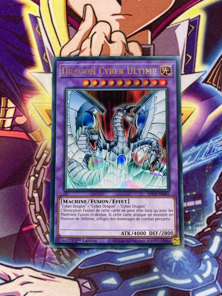 Carte Yu-Gi-Oh! Dragon Cyber Ultime SDCS-FR041 1st / Ultra Rare Etat : Neuf Langue : Français Envoie rapide et soigné sous protection. Si la carte est neuve, elle est tout juste sortie de booster et mise de suite sous protection. Si la carte est d'occasion, elle peut comporter des points blancs et/ou des côtés blanchis. Vous recevez toujours la carte présentée sur la photo de l'annonce. Attention : En cas d'achats multiples pensez à regrouper vos articles en utilisant le panier d'Ebay afin de faire un seul paiement . Si les frais de ports se cumulent dans votre panier veuillez cliquer sur " Demander le total au vendeur" : nous ajusterons la facture. Cela facilitera le traitement de votre commande et accélérera son expédition ! Pour toute question ou réclamation, n'hésitez pas à nous contacter via Ebay . Retrouvez-nous également sur Facebook : KuribohShop.KD Bon Duel !
